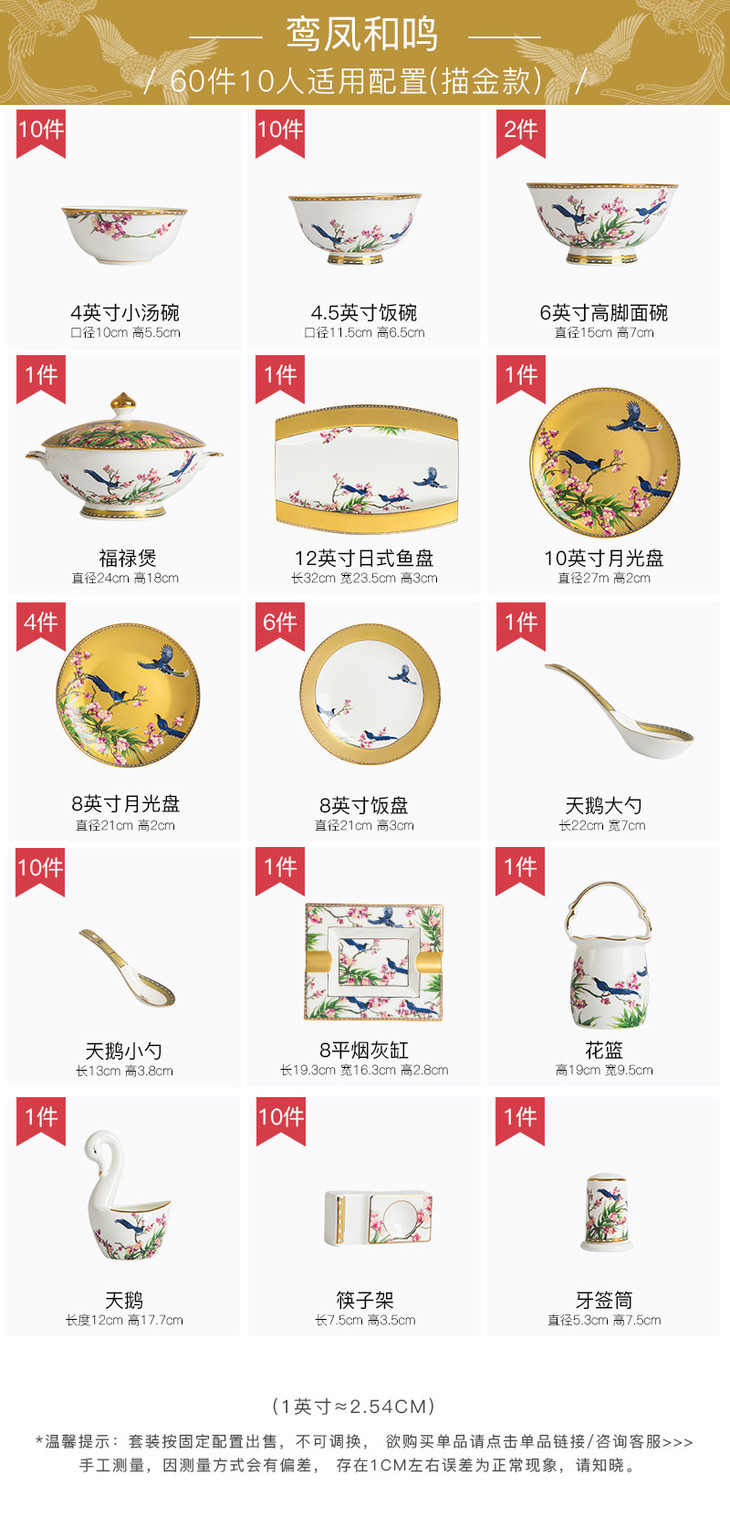 奥唯餐具套装家用中国风高档碗盘欧式乔礼礼物骨瓷碗碟景德镇陶瓷