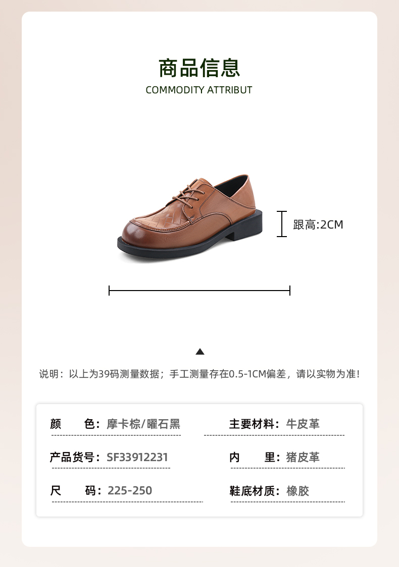 超值精选|Safiya/索菲娅2024时尚舒适英伦风百搭休闲小皮鞋SF33912231