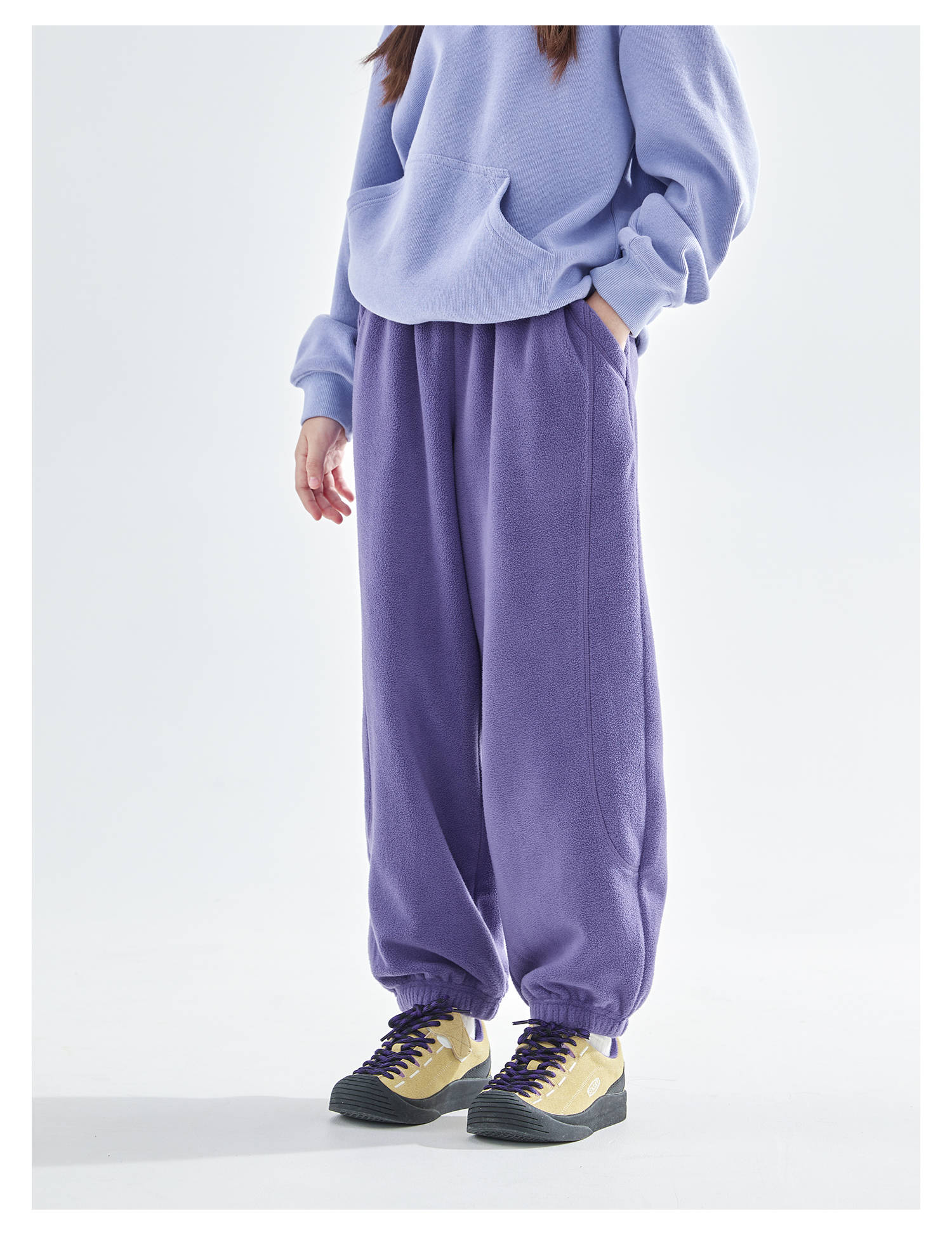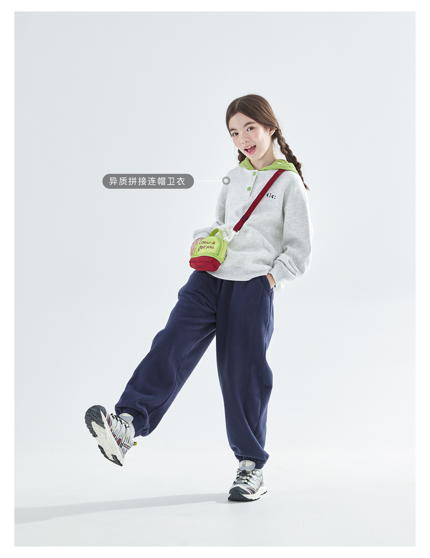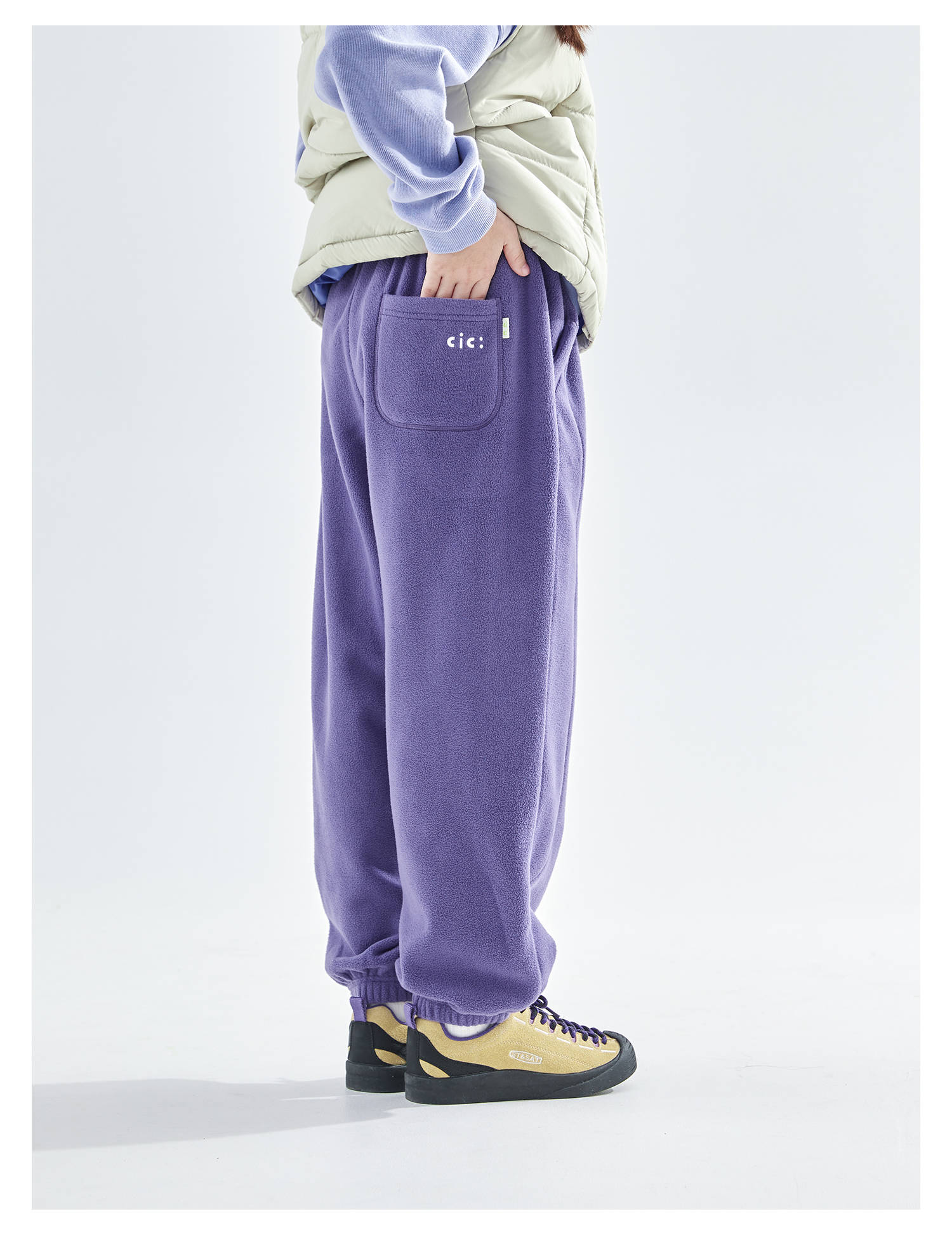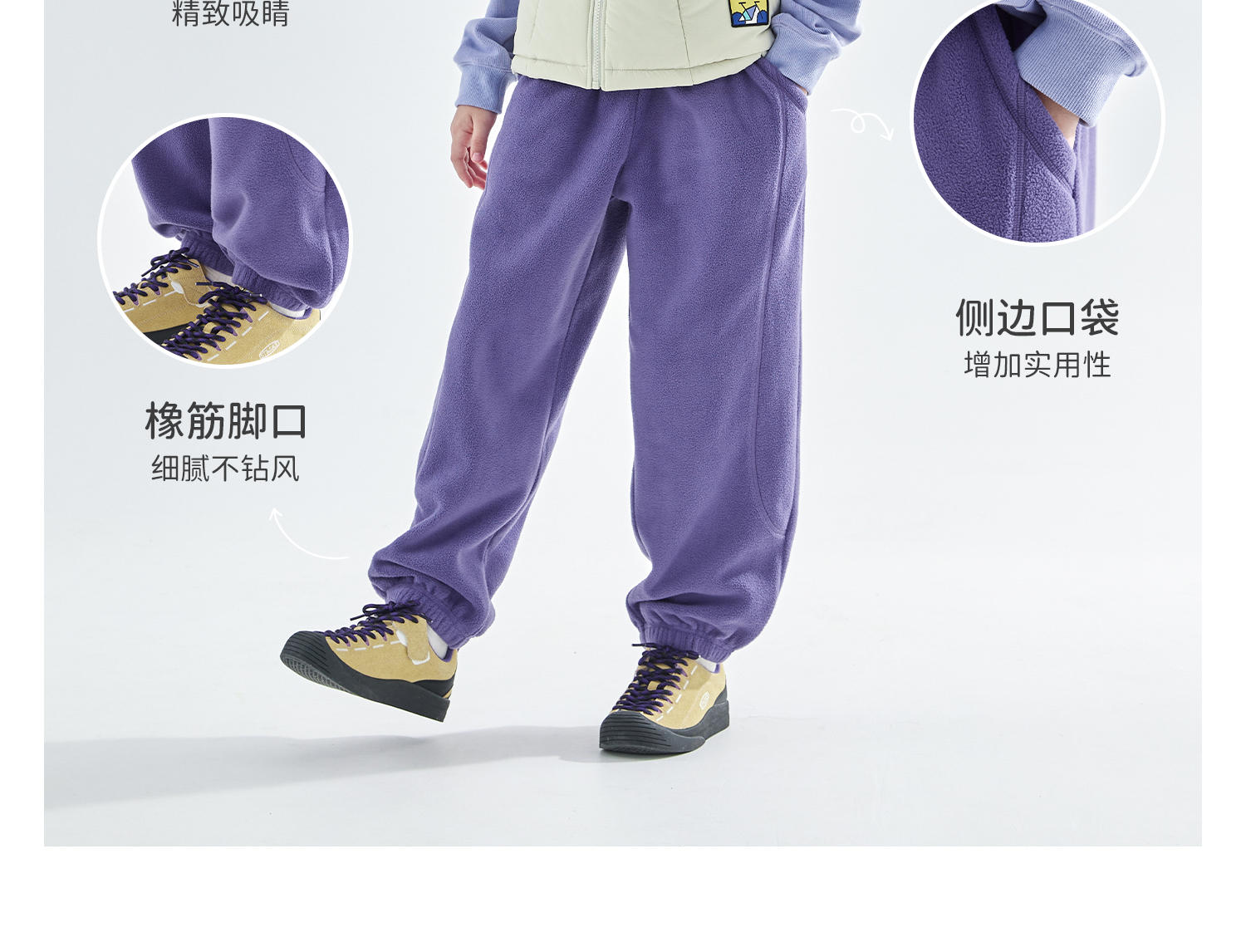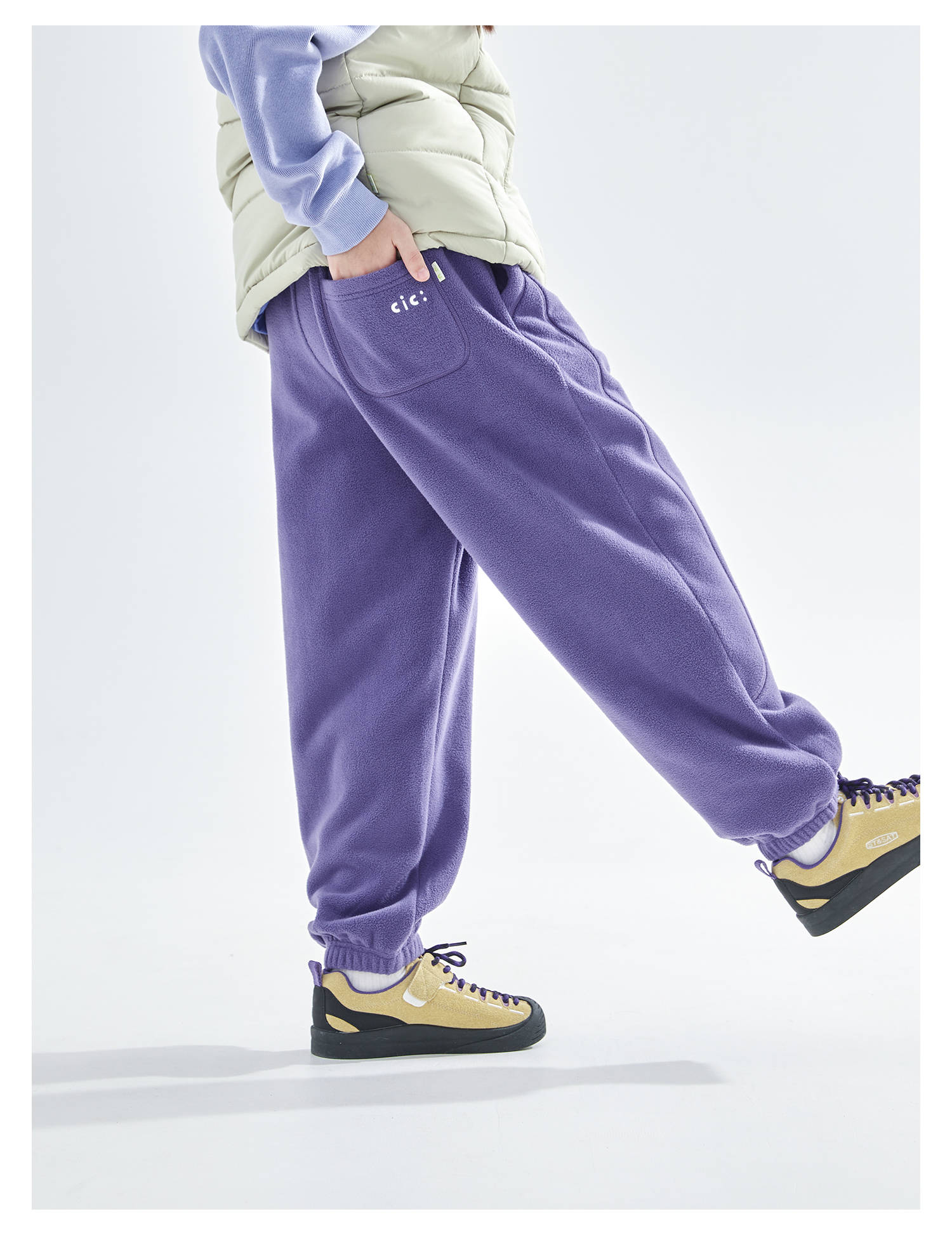 cicochild25年冬季新款亲子中大女童双面摇粒绒卫裤抗静电束脚裤