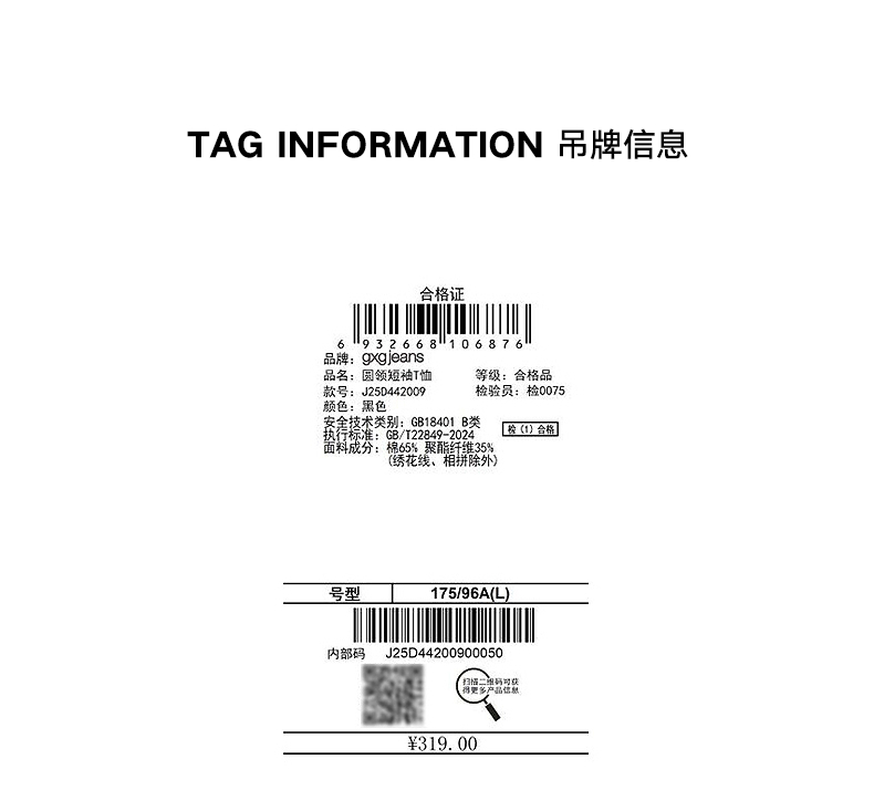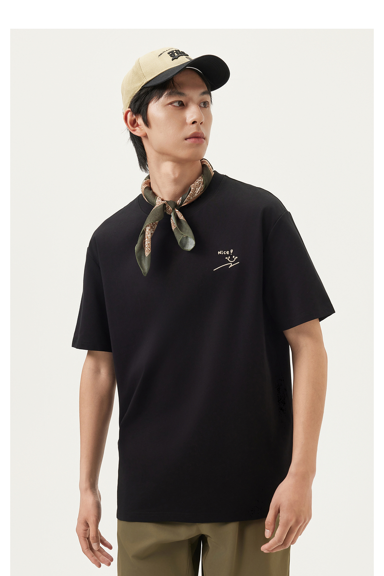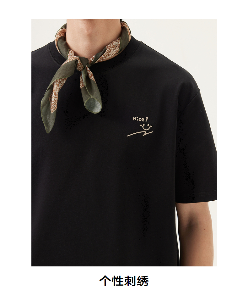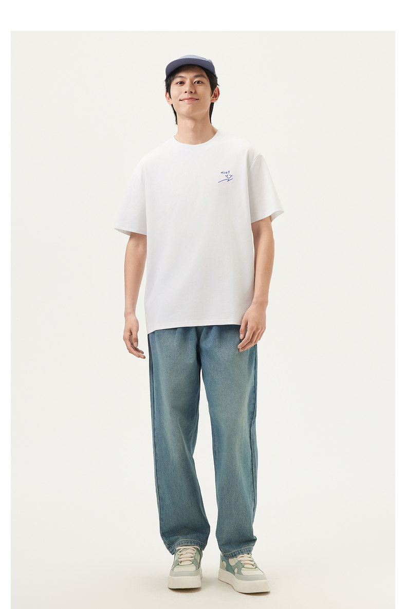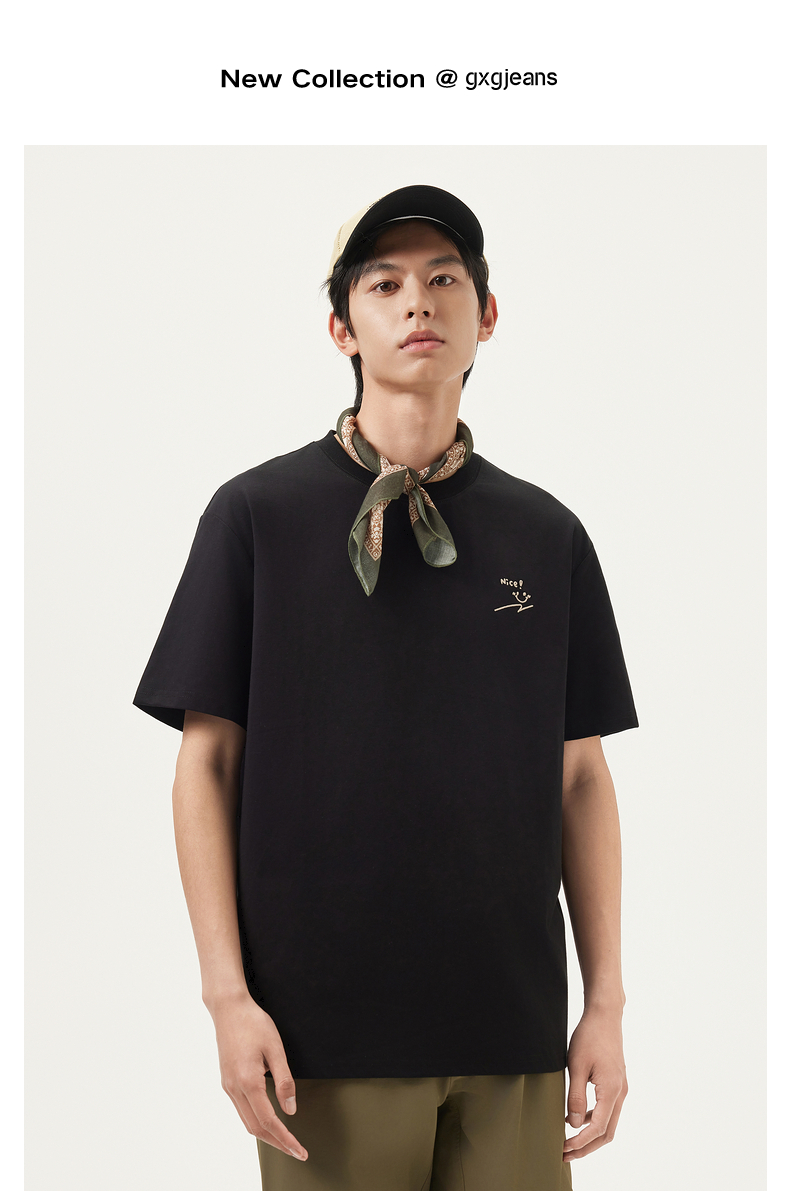 gxg.jeans男装 25年夏季热卖圆领简约趣味刺绣短袖宽松T恤短袖男