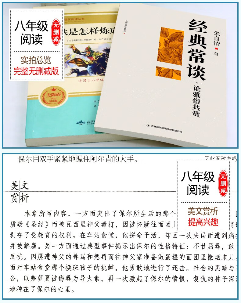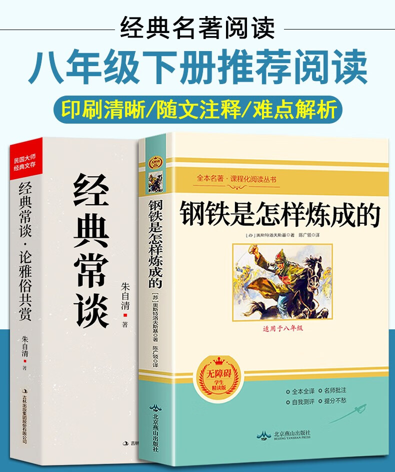 经典常谈朱自清钢铁是怎样炼成的和傅雷家书原版原著正版八年级下册课外书bi读完整版初二阅读书籍语文 经典常谈+钢铁是怎样炼成的