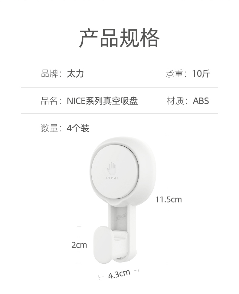 太力(TAILI)真空吸盘挂钩4个装AW563