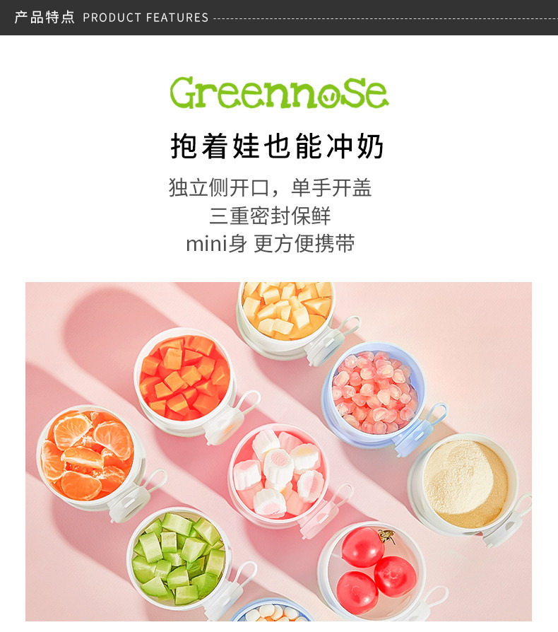 GREENNOSE/绿鼻子 婴儿奶粉盒便携式外出密封大容量储存分装盒JPY带授权招加盟代理