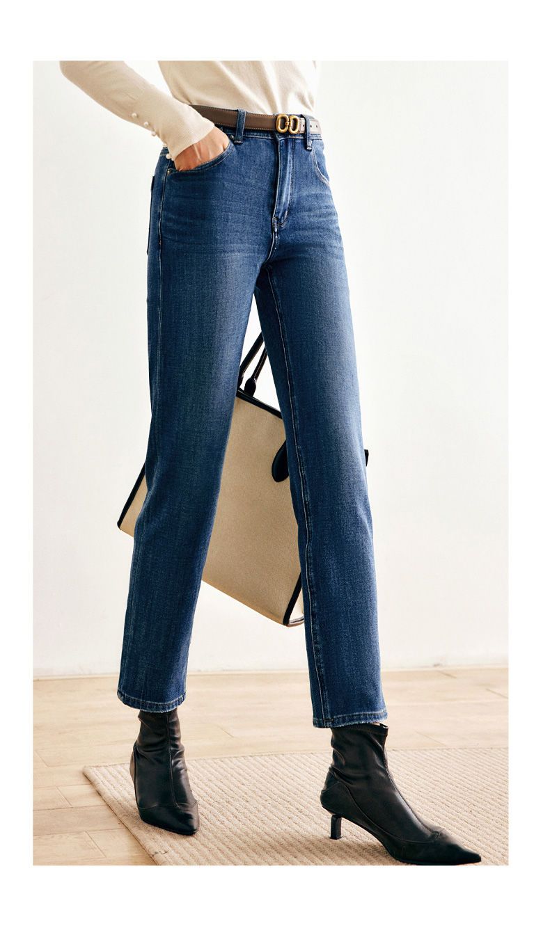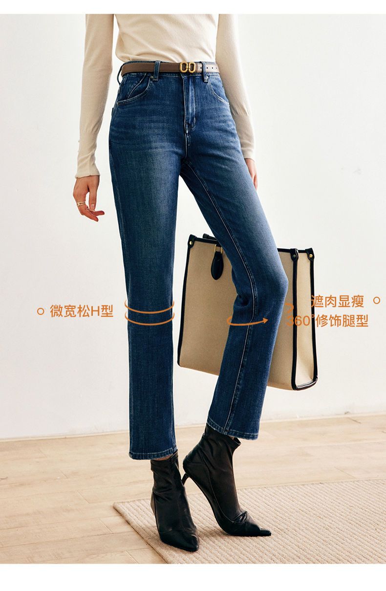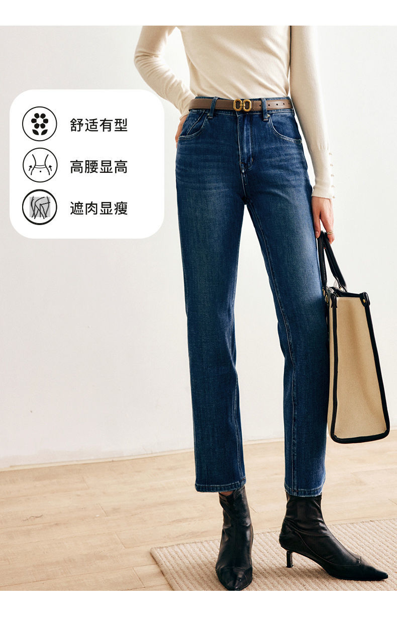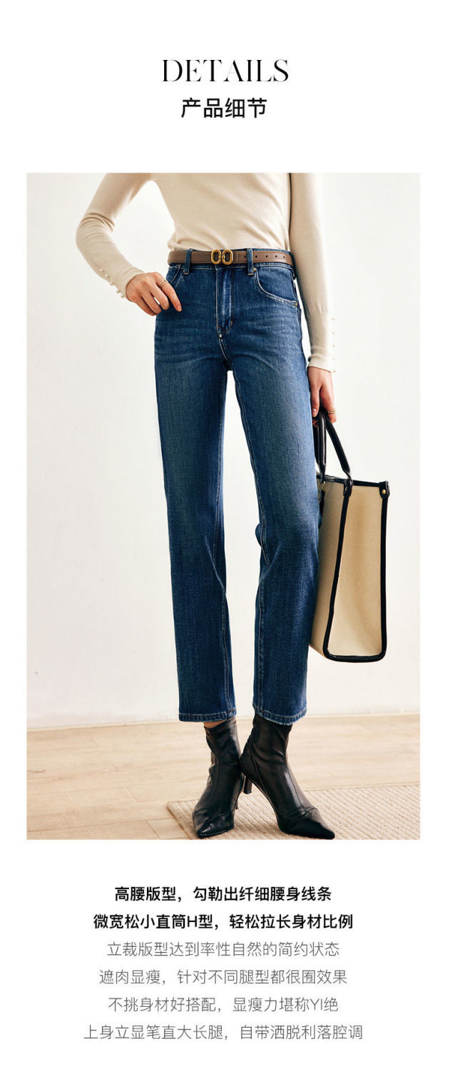 OLrain欧芮儿法式深色牛仔裤女早秋2022新款高级设计感显瘦直筒裤