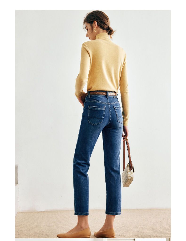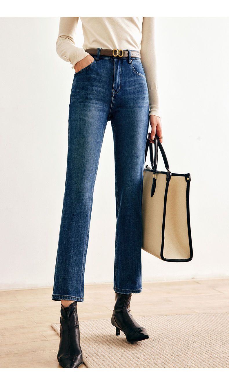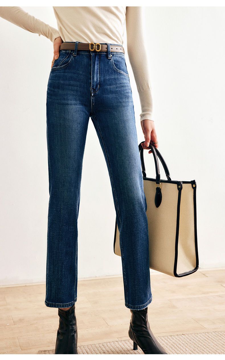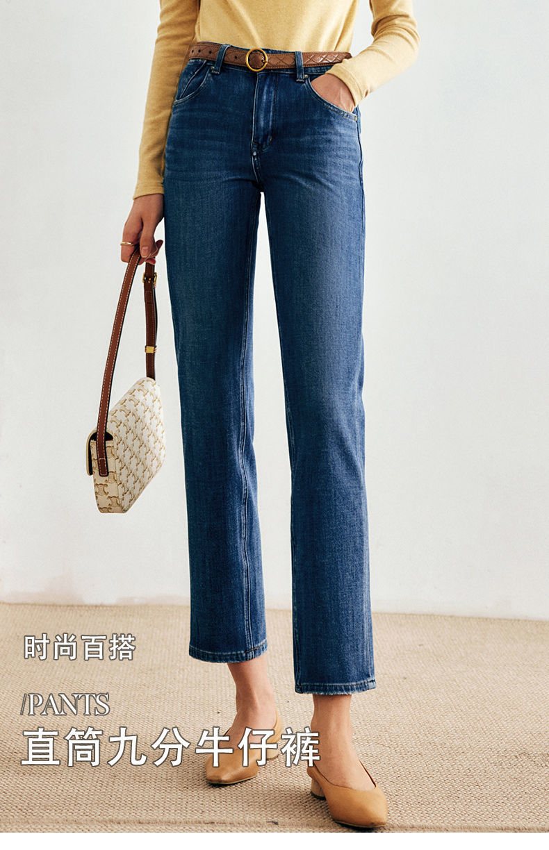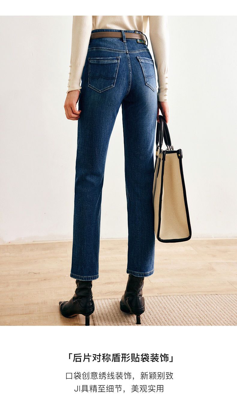 OLrain欧芮儿法式深色牛仔裤女早秋2022新款高级设计感显瘦直筒裤