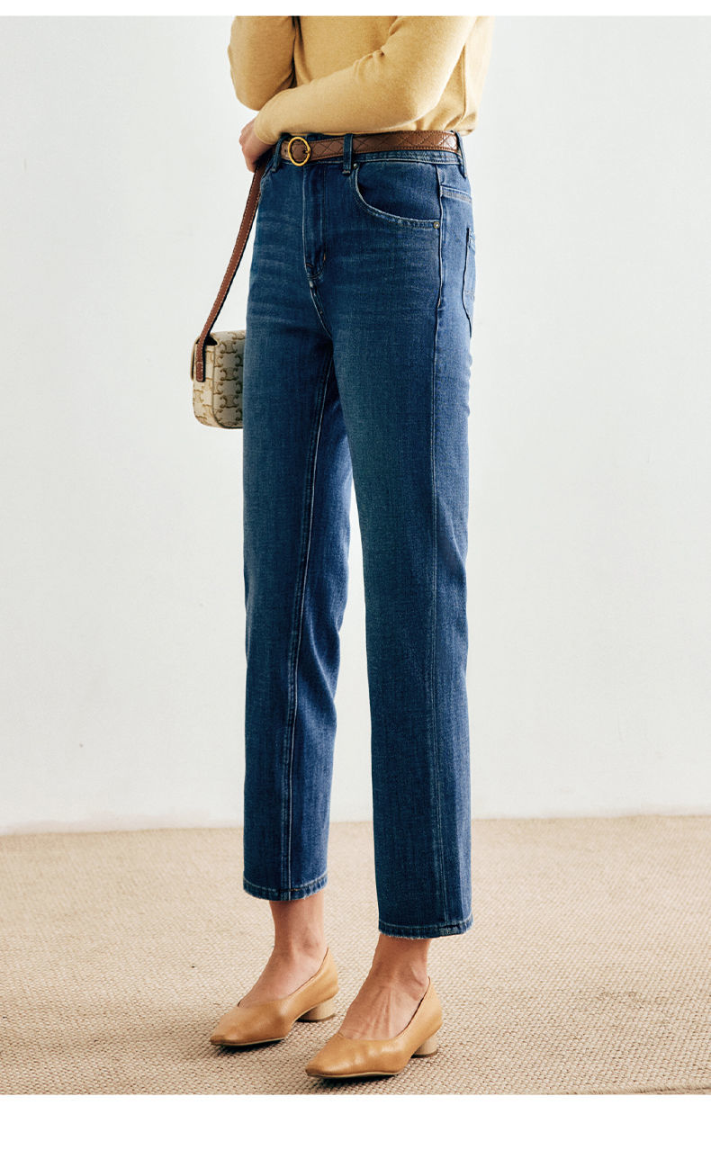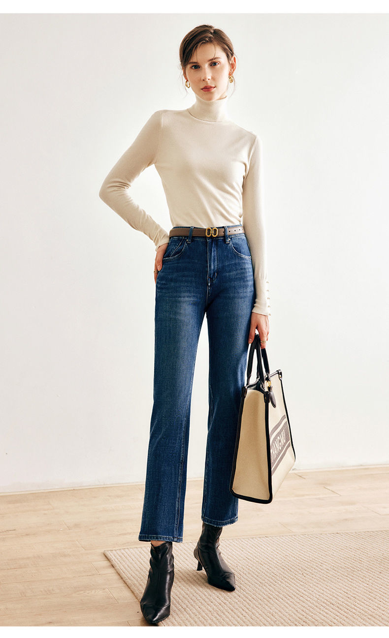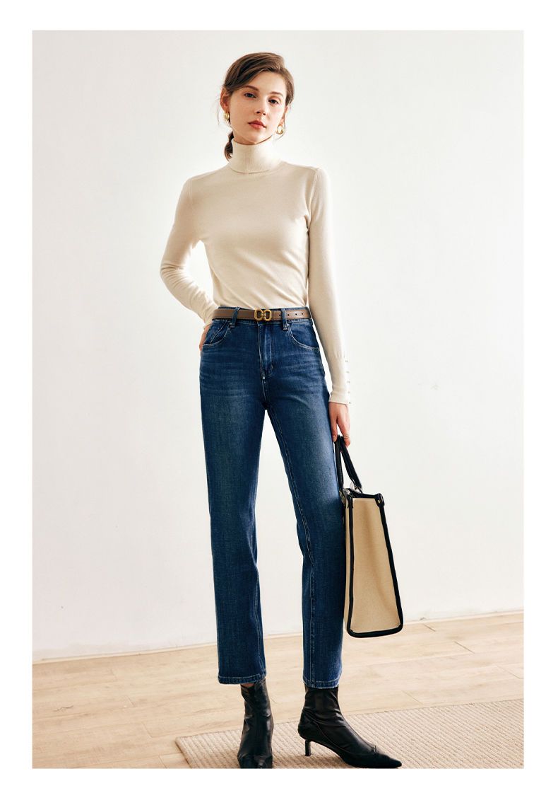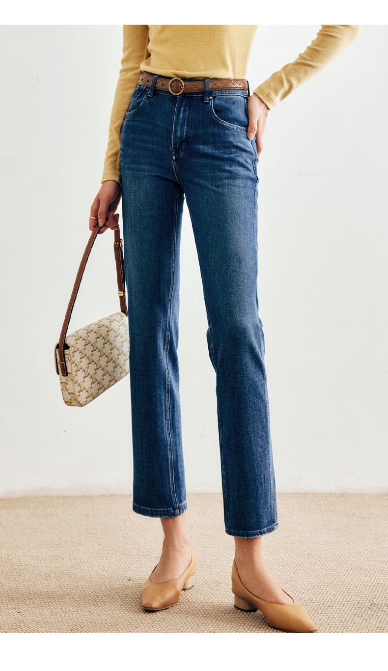 OLrain欧芮儿法式深色牛仔裤女早秋2022新款高级设计感显瘦直筒裤
