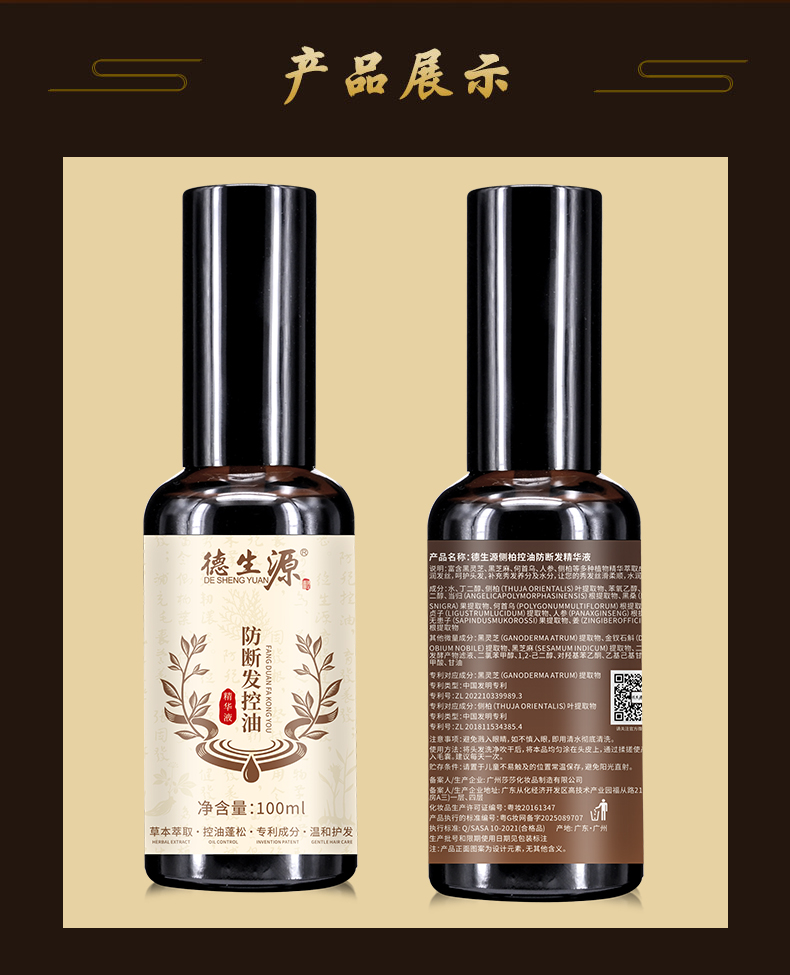 德生源侧柏叶防断发控油精华液 强韧发根修护受损精华