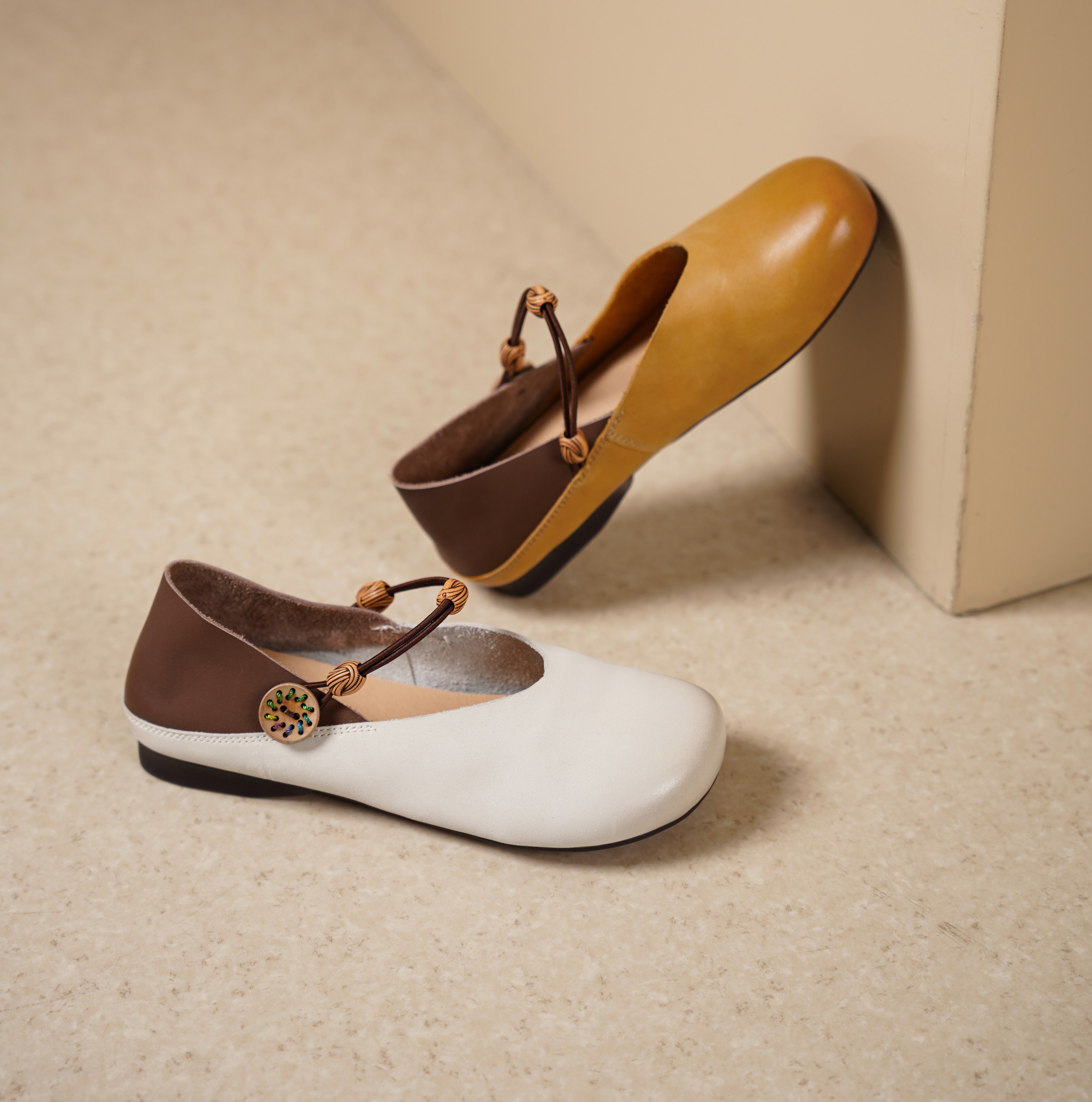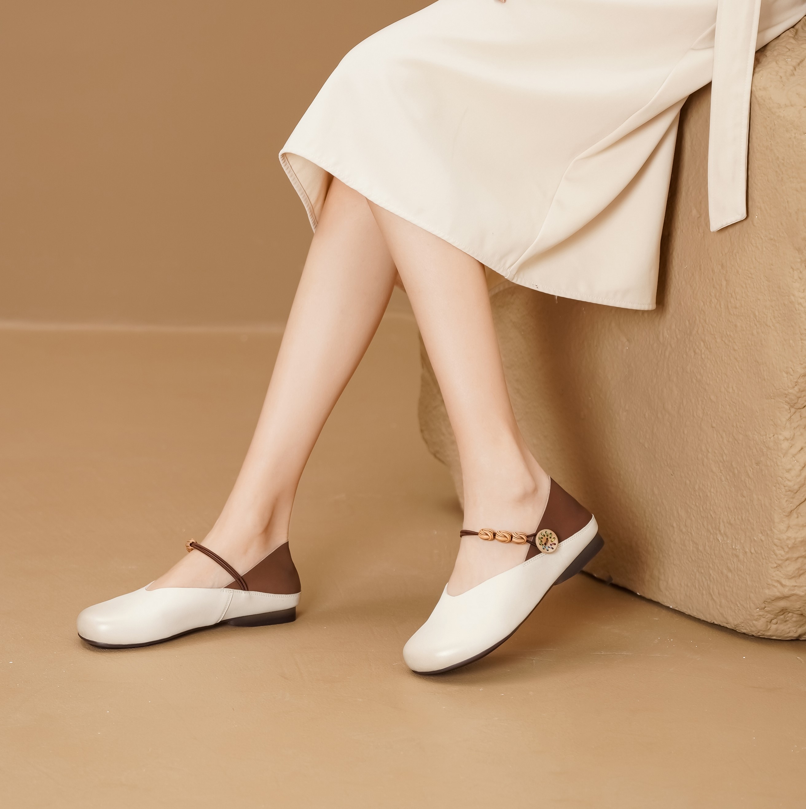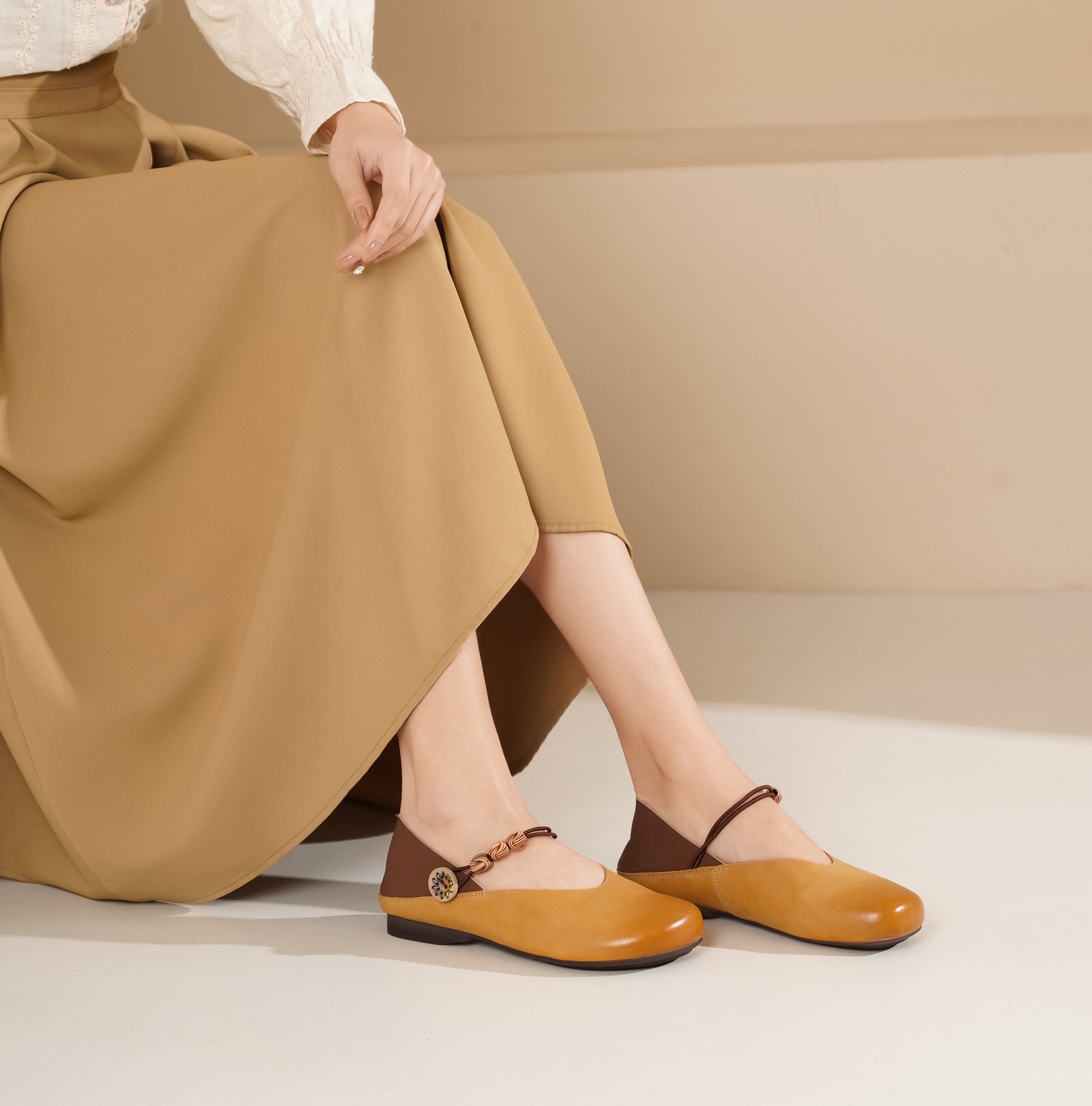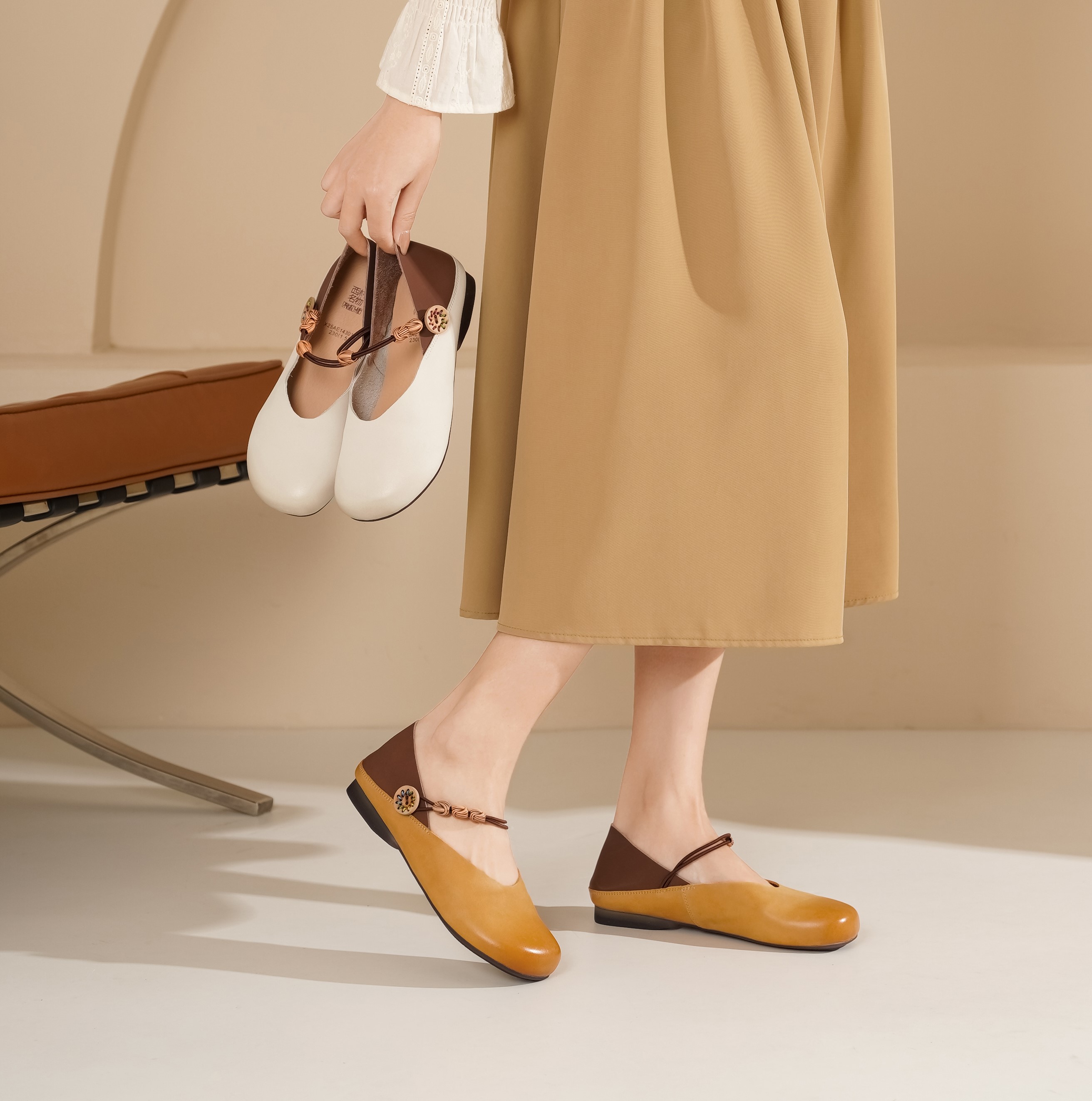 西村名物2025年春季新款舒适平底小圆头民族风浅口单鞋X25AE14301