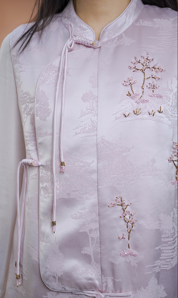 司歌醋酸国风马甲提花盯珠重工艺外套B93G5225