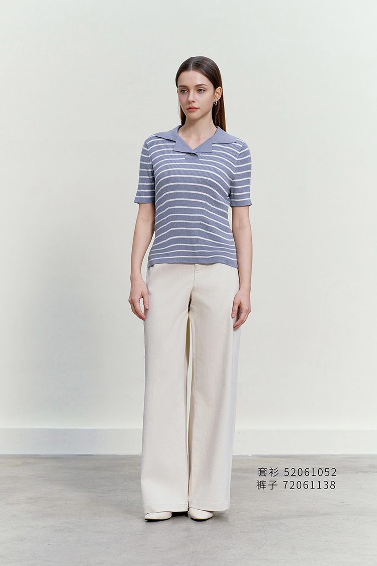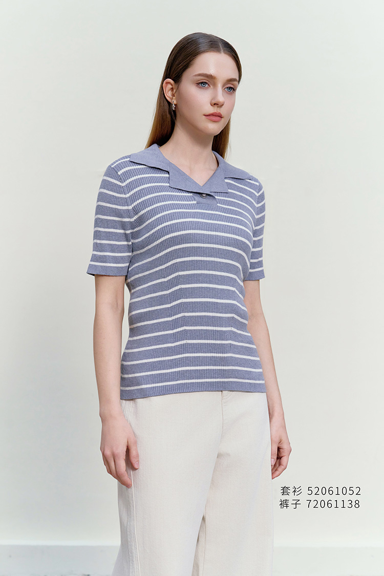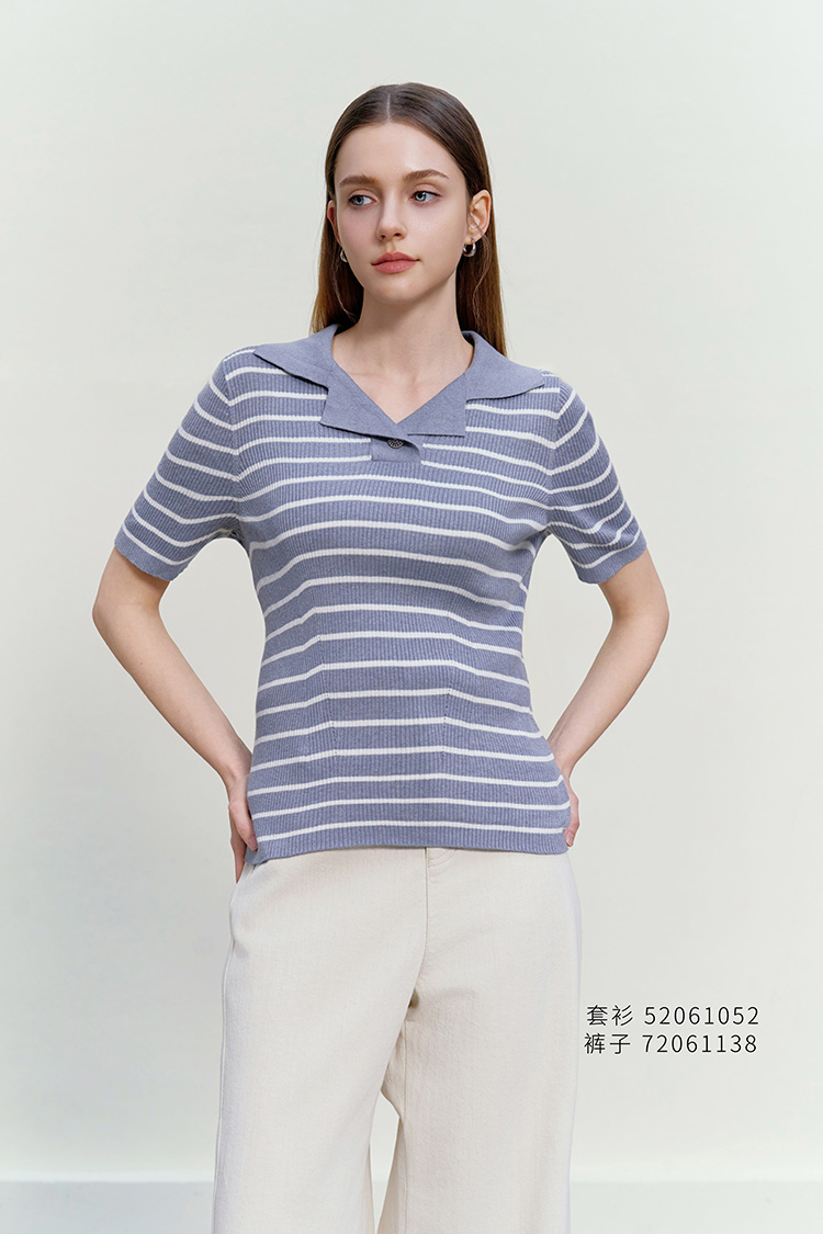 【V领抽条条纹针织衫】26年春夏新品女士棉+桑蚕丝+亚麻修身显瘦上衣