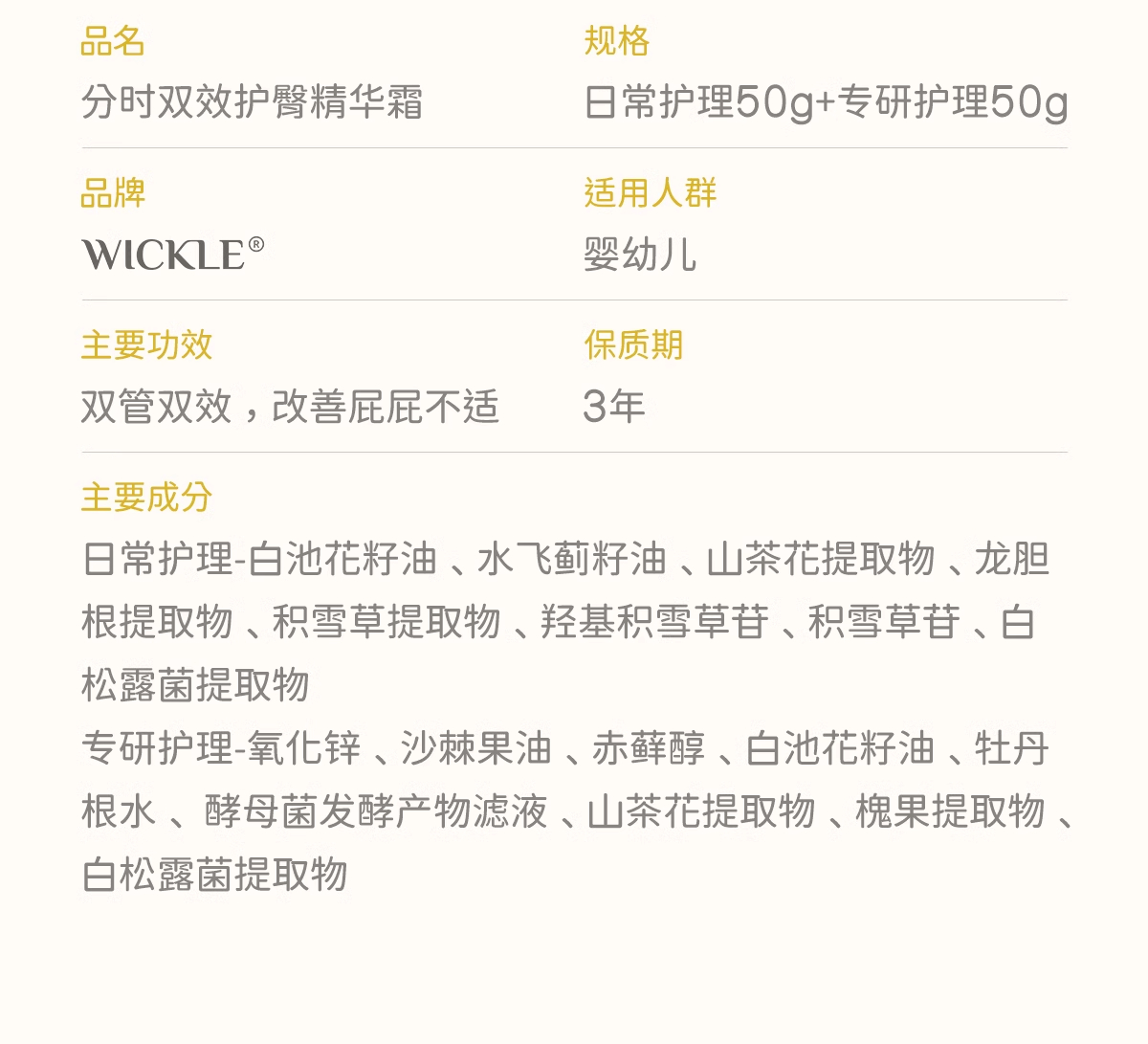WICKLE双管护臀膏新生婴儿宝宝红屁股预防pp护臀100g/WH-WC8003