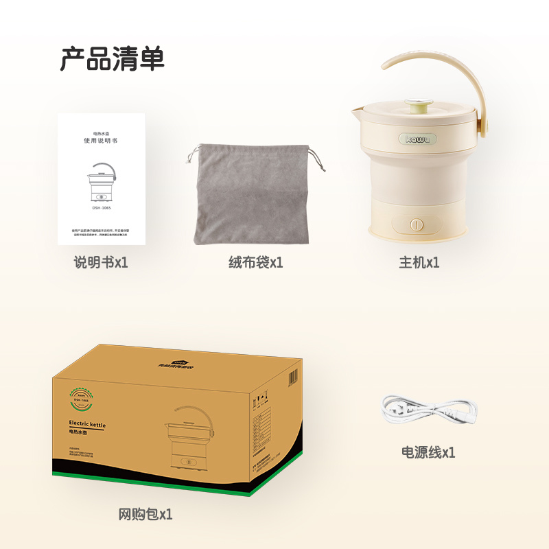 全壶身可收缩折叠,比饭盒更小巧便携!食品级加厚硅胶安全,无异味耐高温。它比烧水杯更轻,放行李箱不占地方~更易携带!304不锈钢发热盘,干净好看,更容易清洁