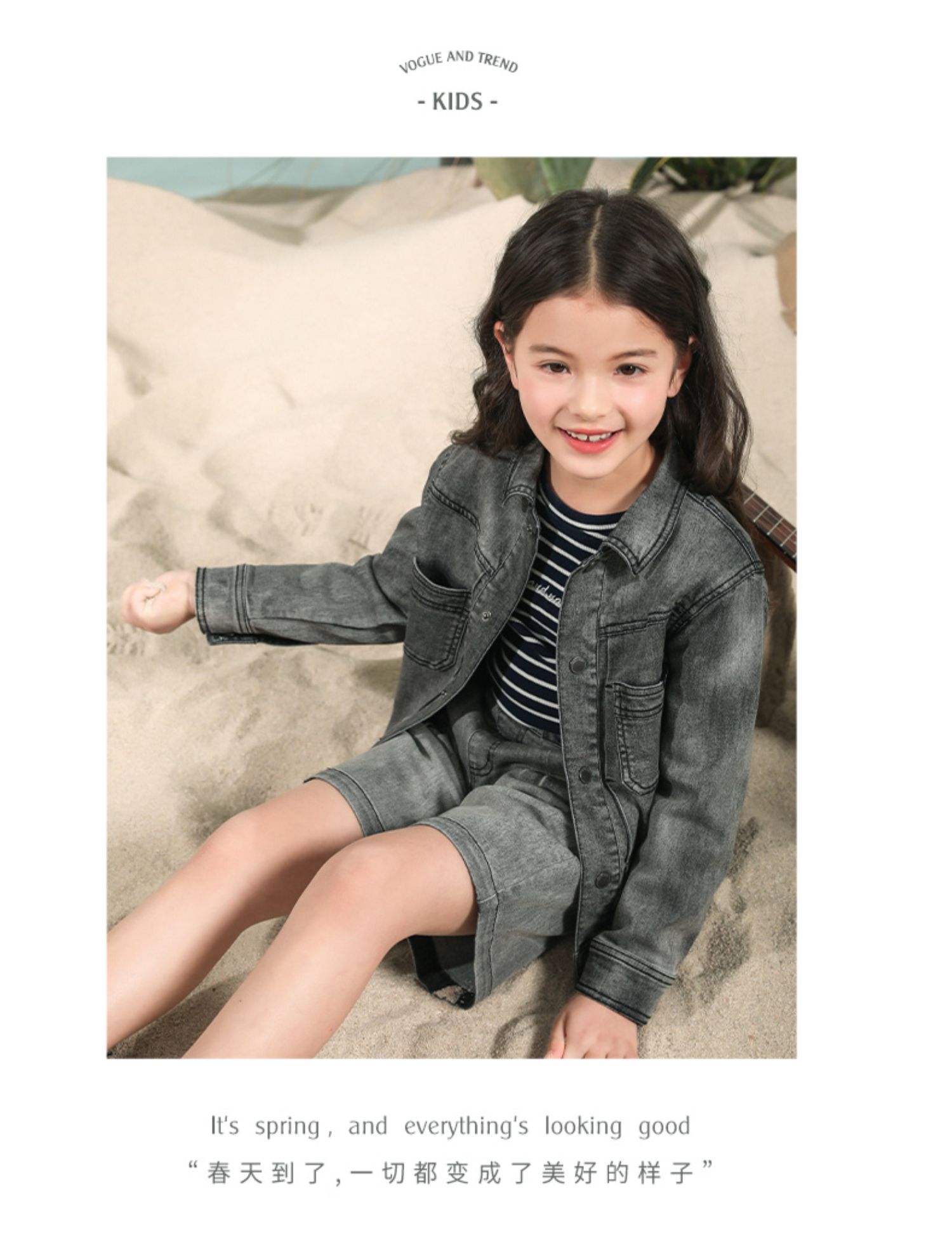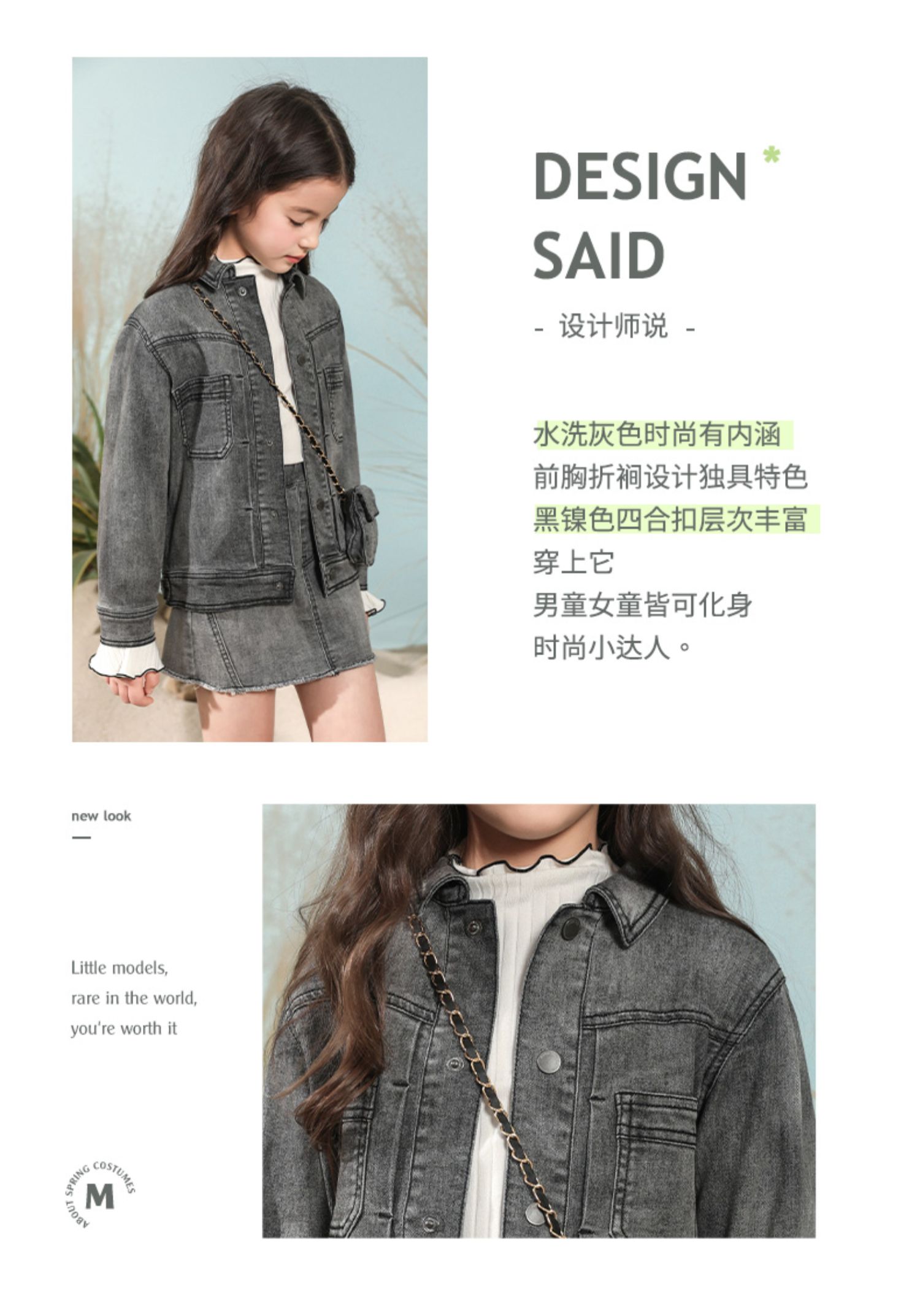 【精工水洗牛仔外套】mettekids童装牛仔衣服男女童春季新款长袖短外套装