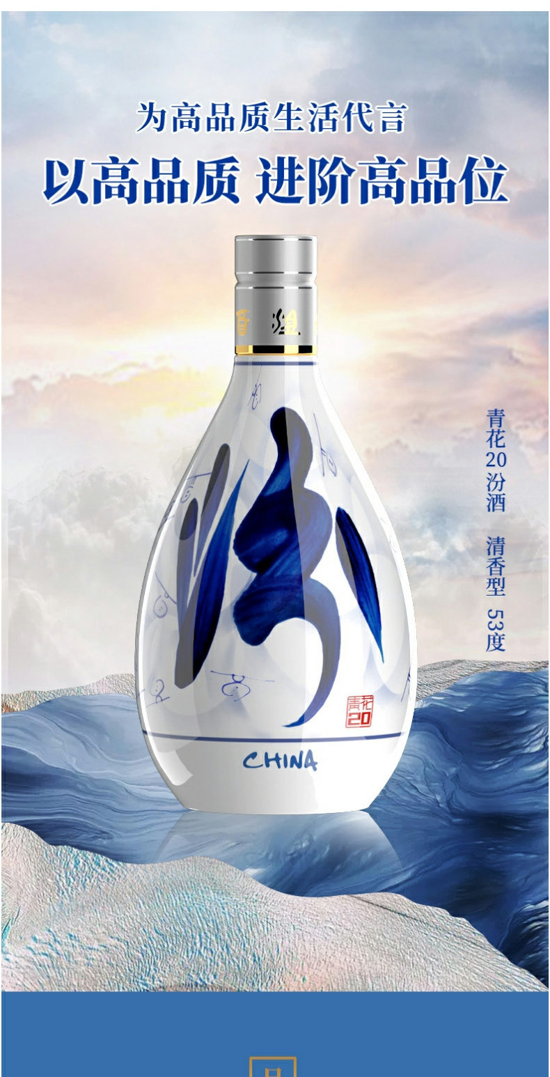 山西汾酒 青花汾20 53度500ml 礼盒装 清香型纯粮白酒