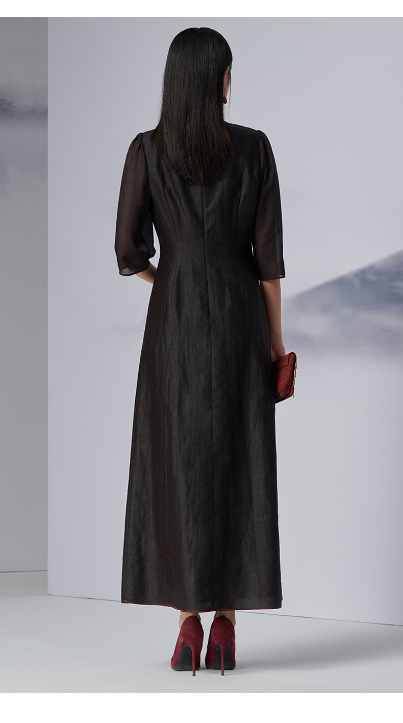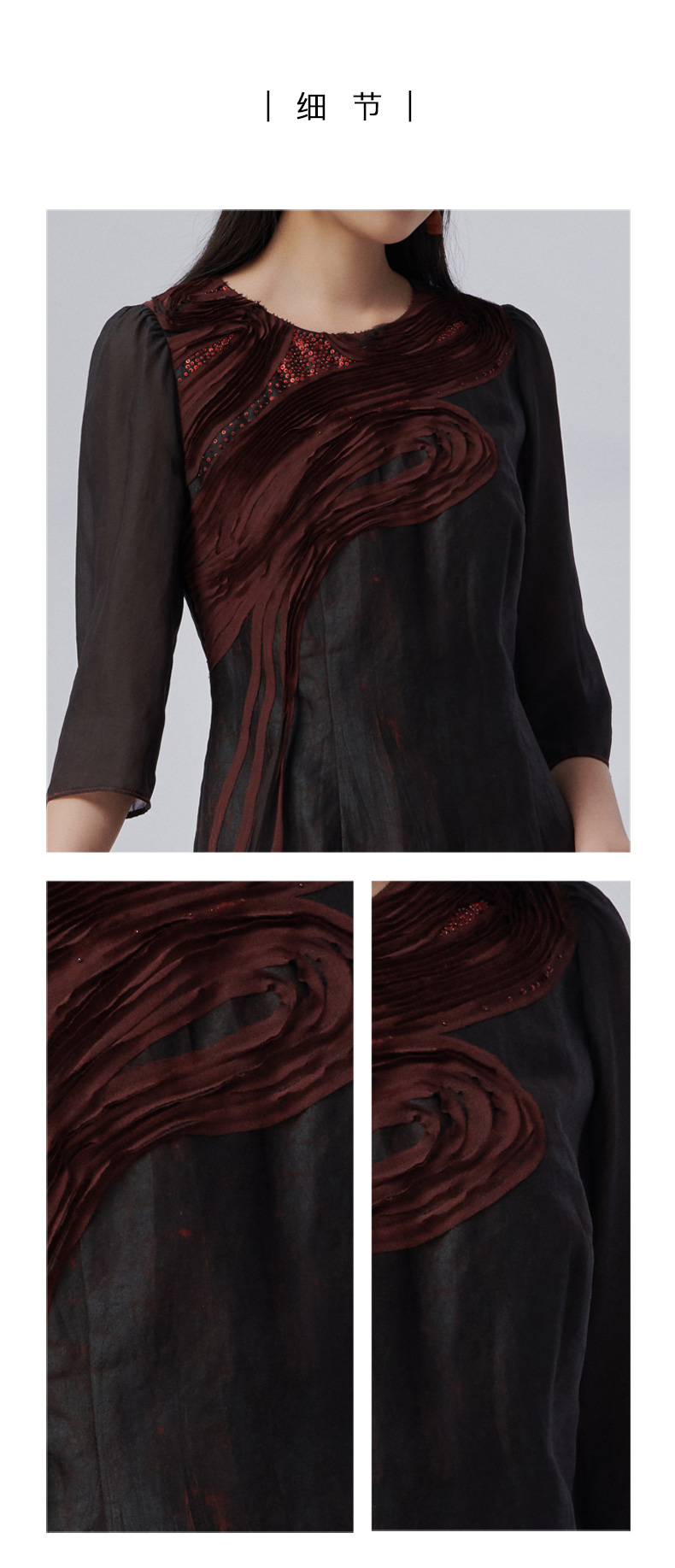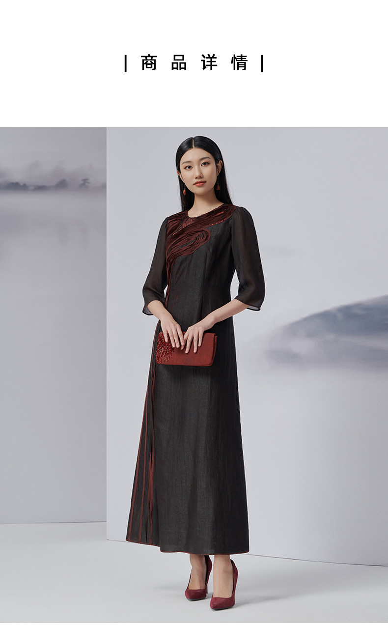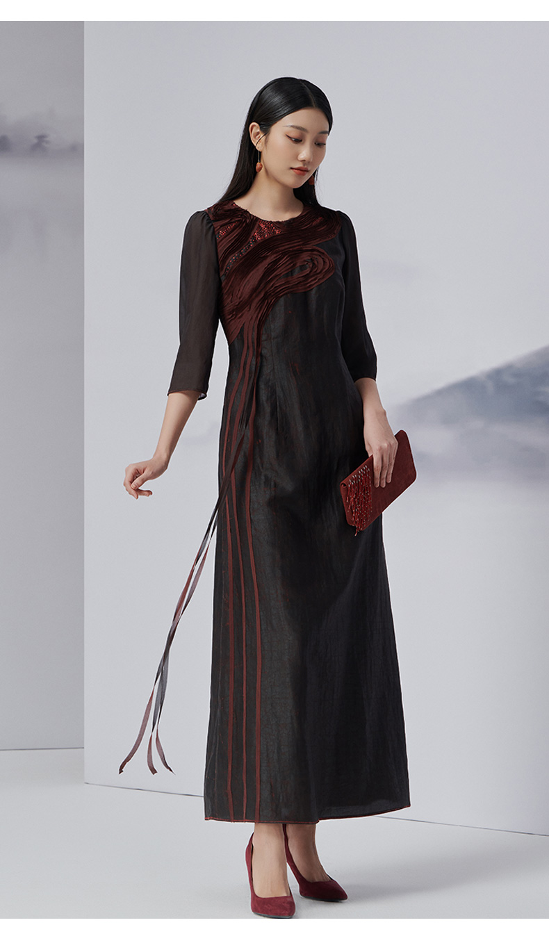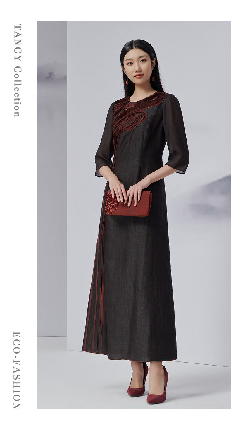TANGY Collection/天意精品2022年秋冬新品时色系列流苏钉珠茛绸连衣裙