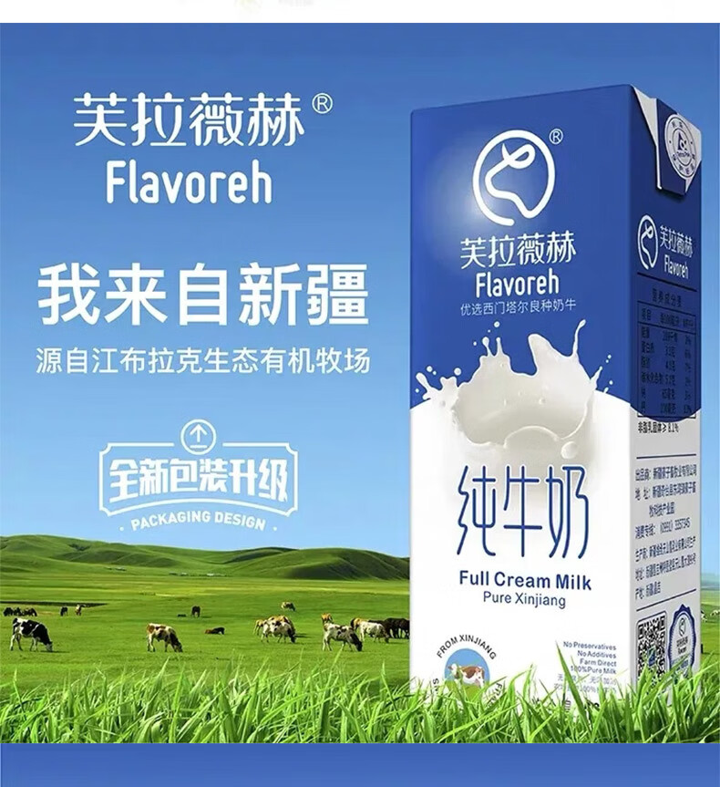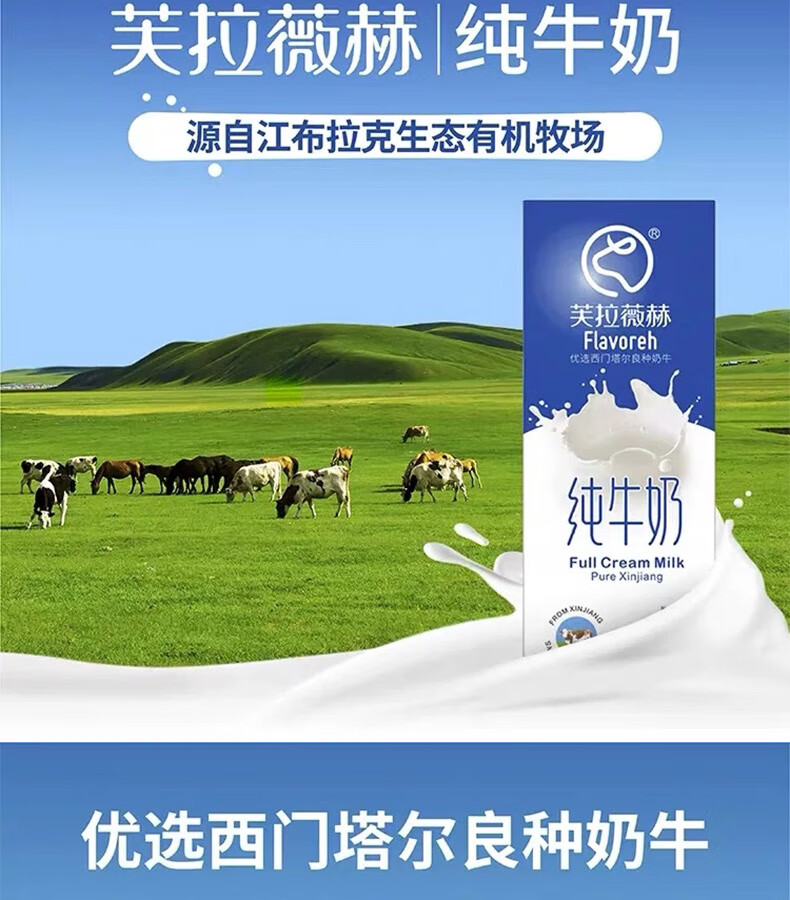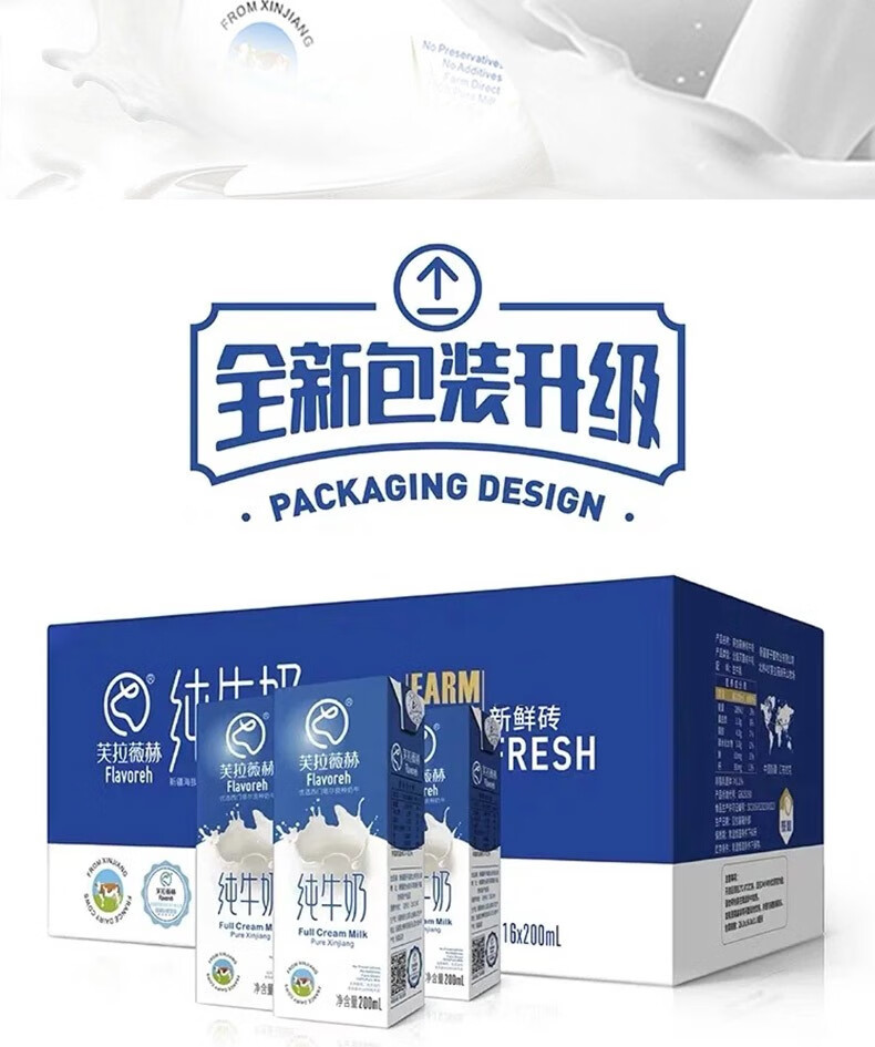 【百】新疆芙拉薇赫纯全脂纯牛奶200ml*16盒(保质期180天)