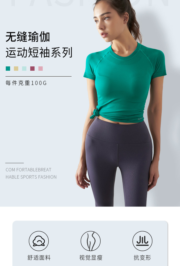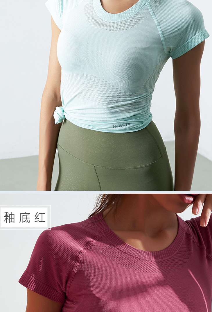 《特惠无缝短袖 不退换》哈瓦塔无缝运动瑜伽服短袖1.0显瘦上衣速干健身房跑步专业春夏薄款(不带胸垫)