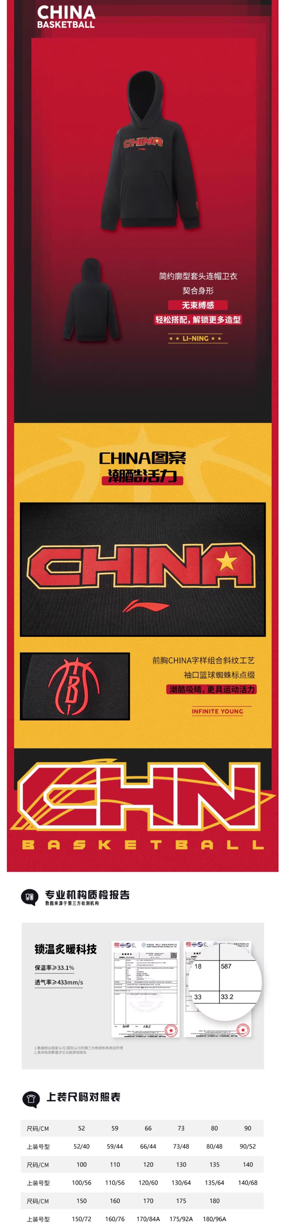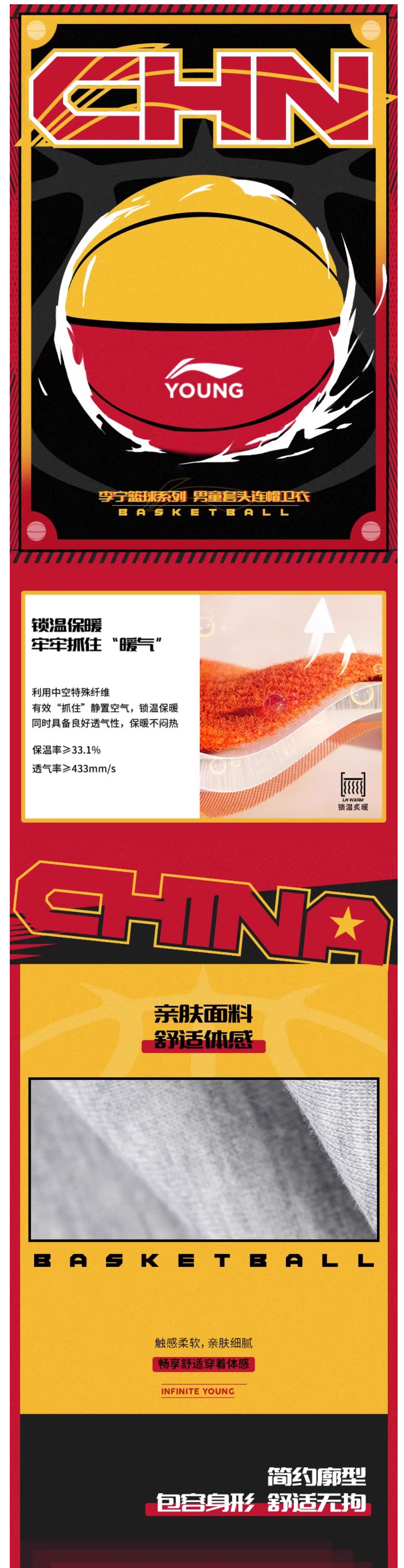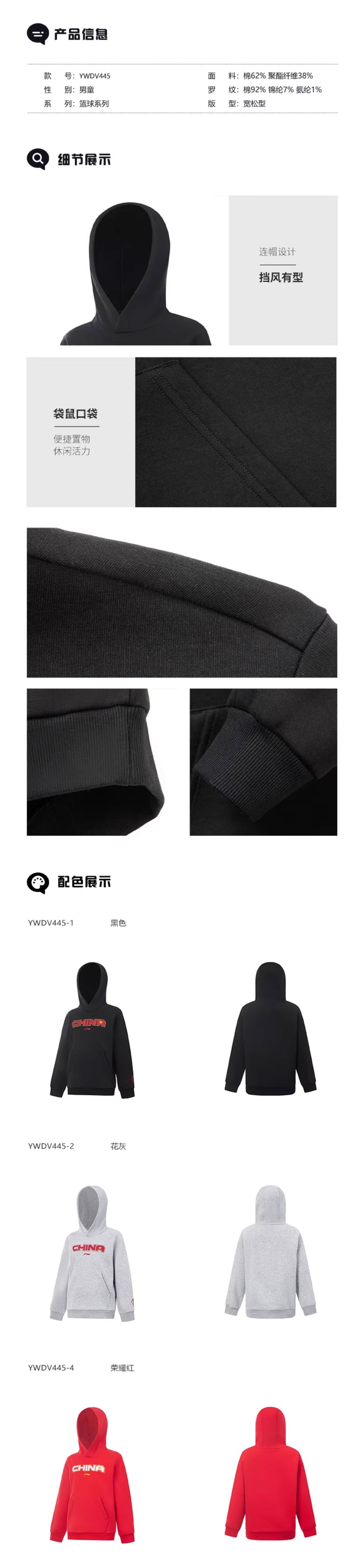李宁儿童装2025冬季新款男大童保暖连帽卫衣YWDV445-1