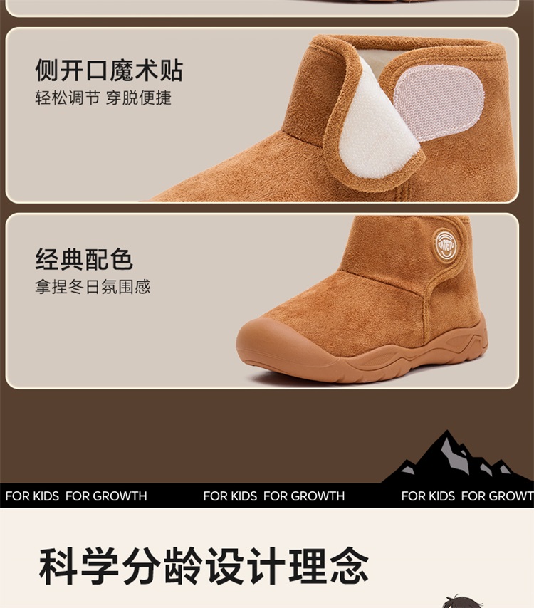 卡特兔童鞋户外儿童运动鞋2025冬季高帮防滑加绒保暖雪地靴棉靴