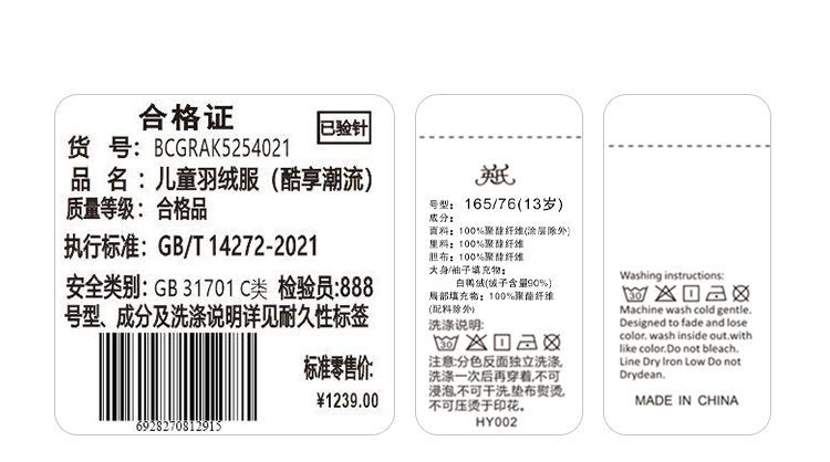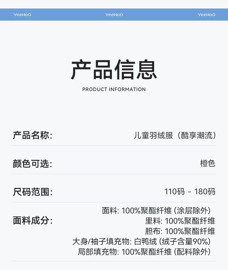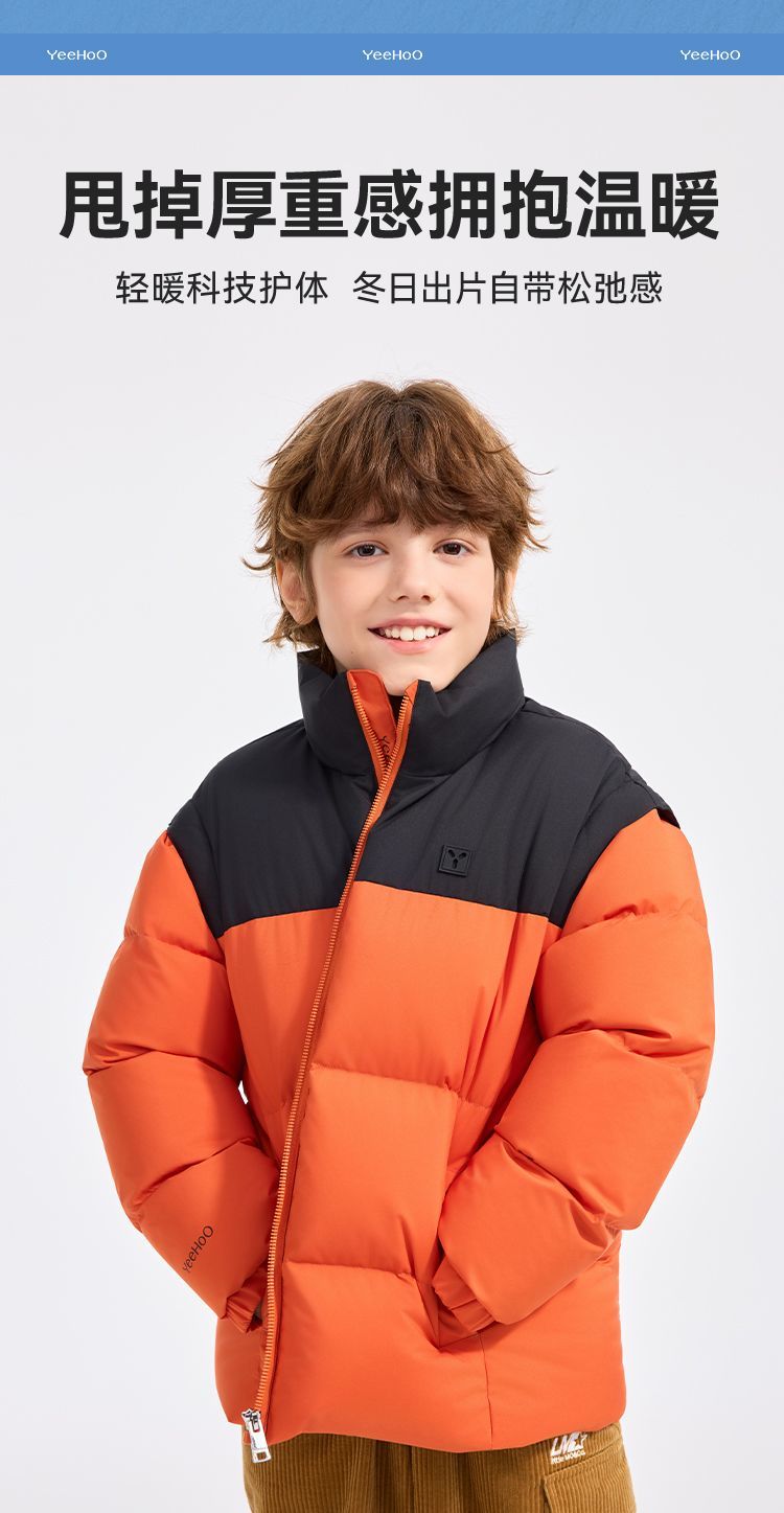 【英氏】【110-180】三防男童羽绒服拼色立领外套
