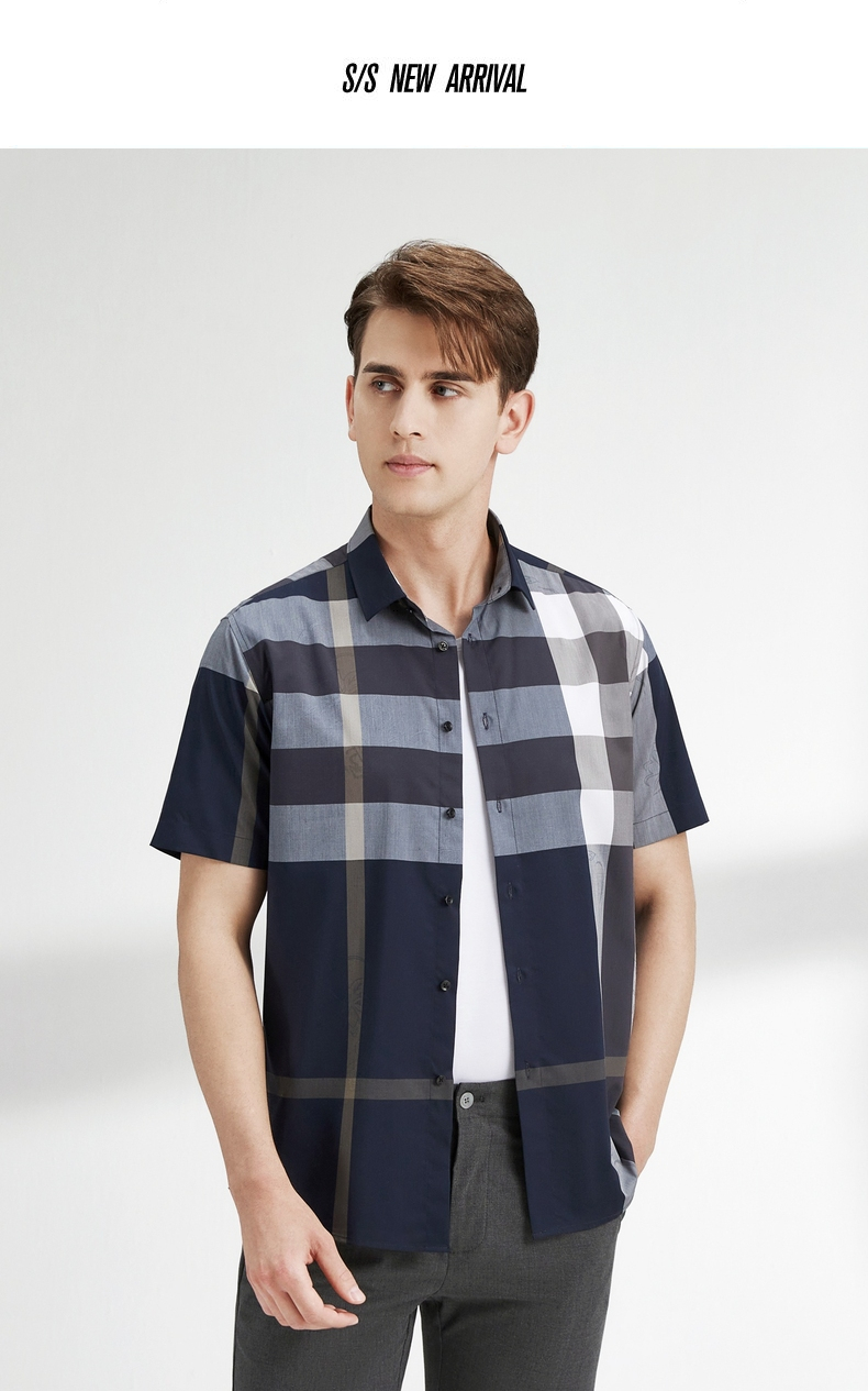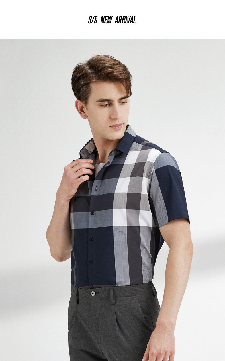 柒牌格子衬衫男夏季新款时尚潮流百搭中青年男士翻领短袖衬衣122A70980