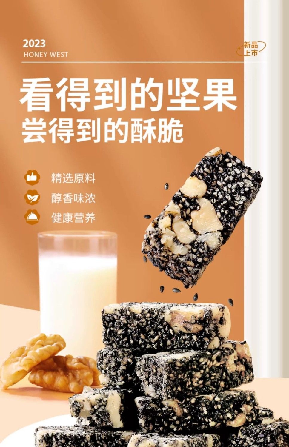 木糖醇黑芝麻核桃糕 零食薄脆网红食品纯手工营养坚果健康解馋