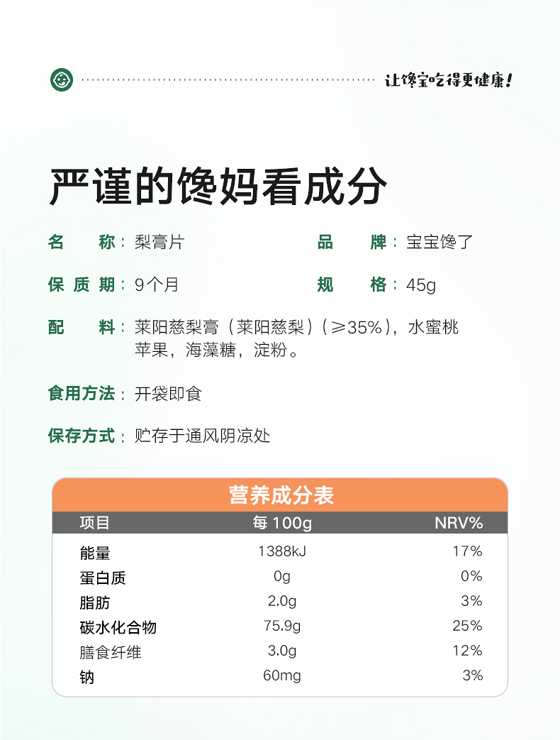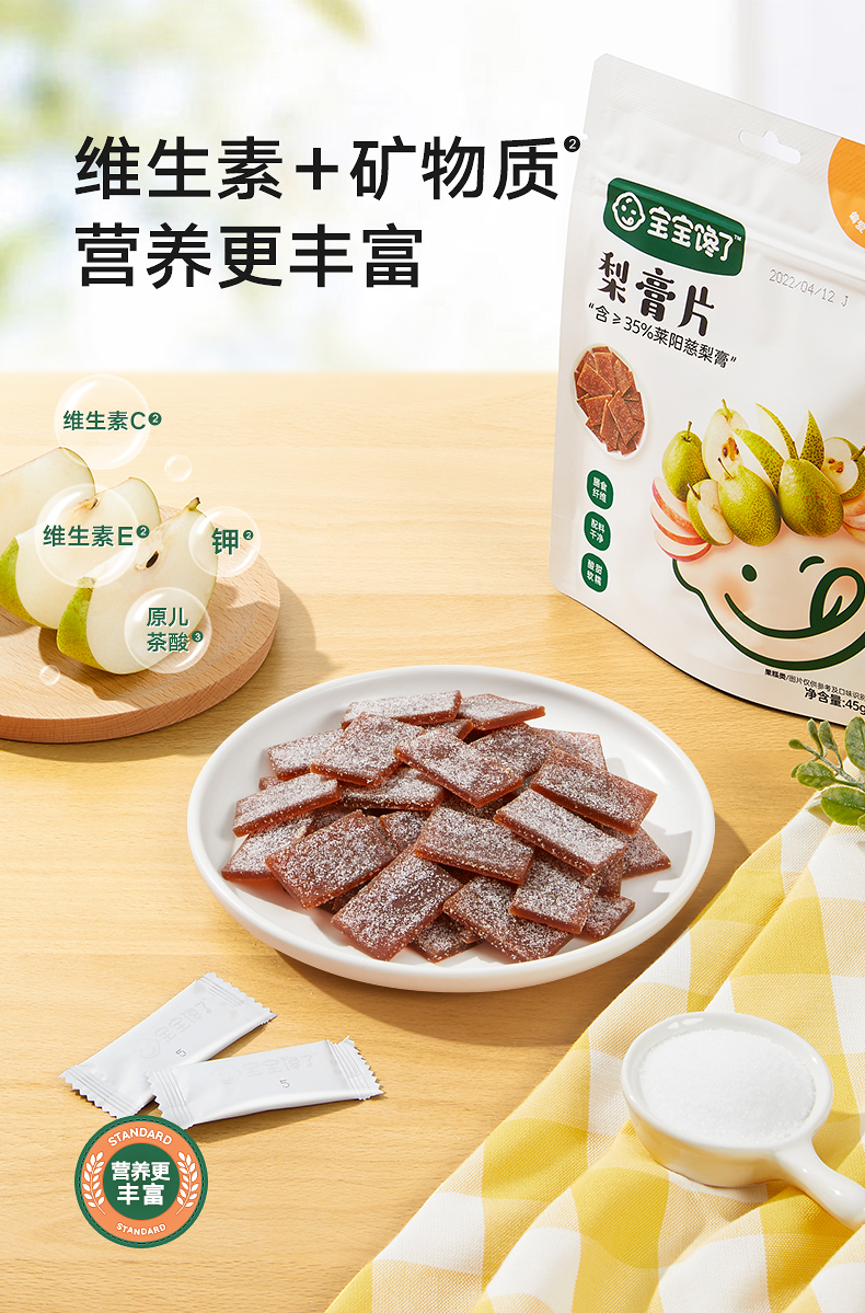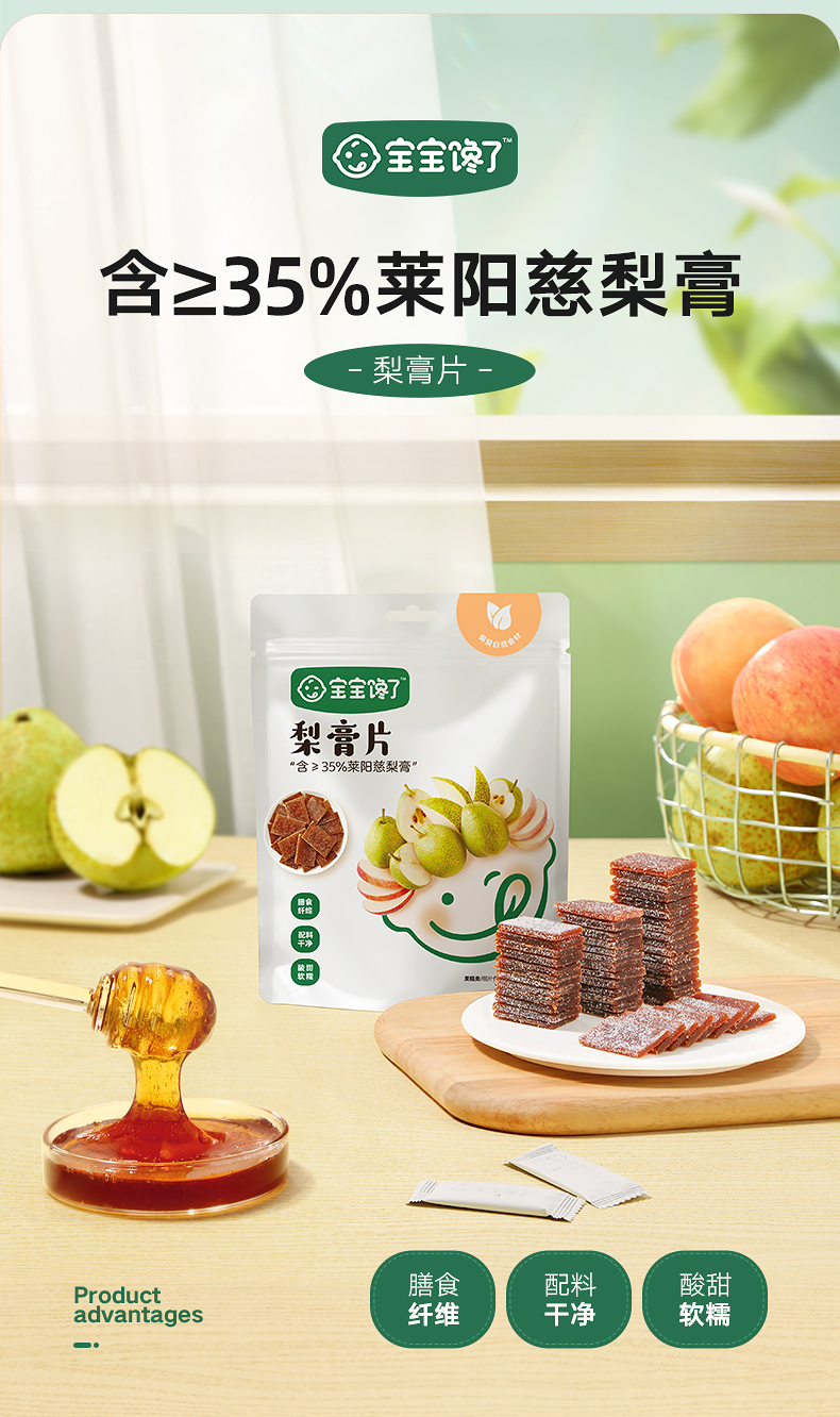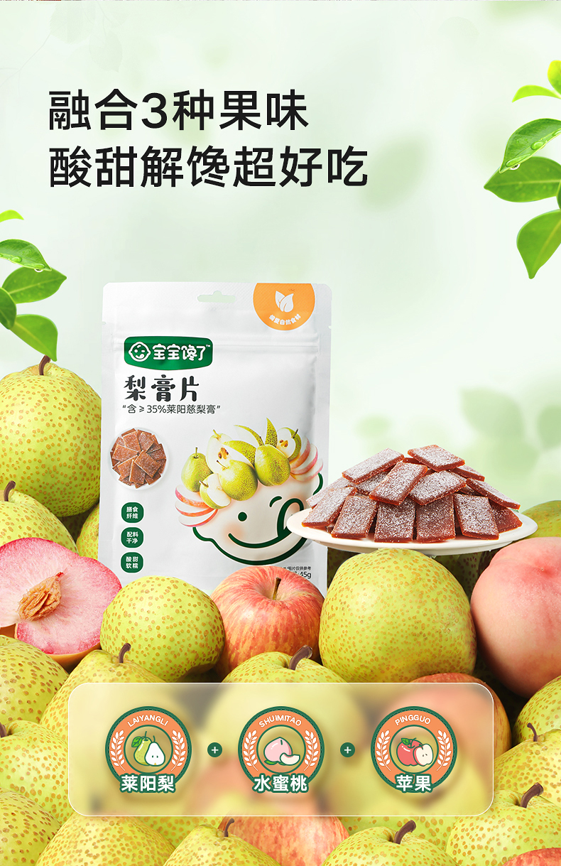 【宝宝馋了】多口味果片(梨膏片/西梅片)35%莱阳慈梨 送12月+婴幼儿食谱