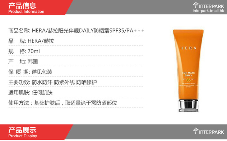 【现货】HERA赫拉防晒霜 70ML 防水防汗清爽不油腻 35倍/50倍
