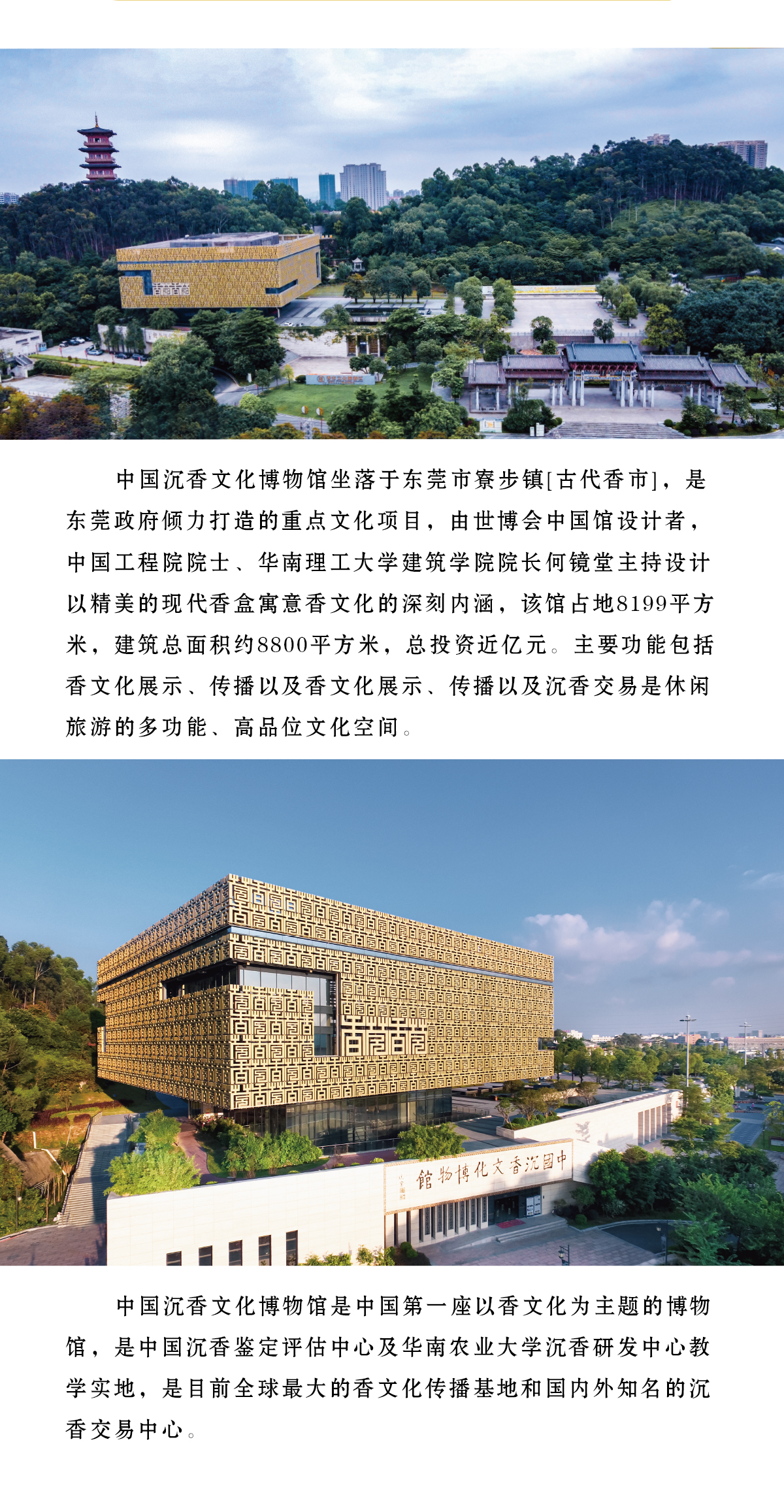 中国沉香文化博物馆坐落于古代[香市]东莞市寮步镇,是东莞政府倾力打造的重点文化项目,由世博会中国馆设计者,中国工程院院士、华南理工大学建筑学院院长何镜堂主持设计,以精美的现代[香盒]寓意香文化的深刻内