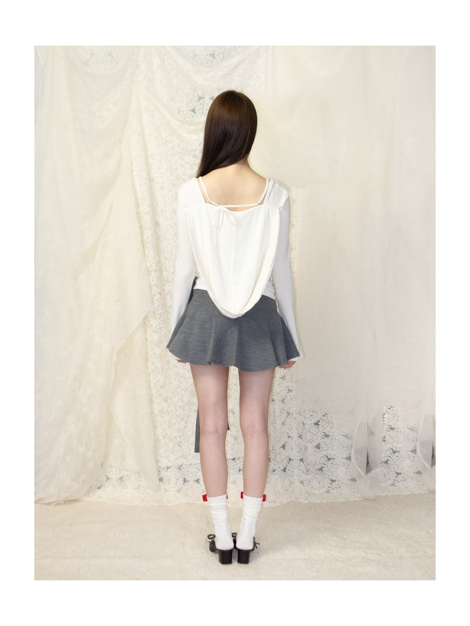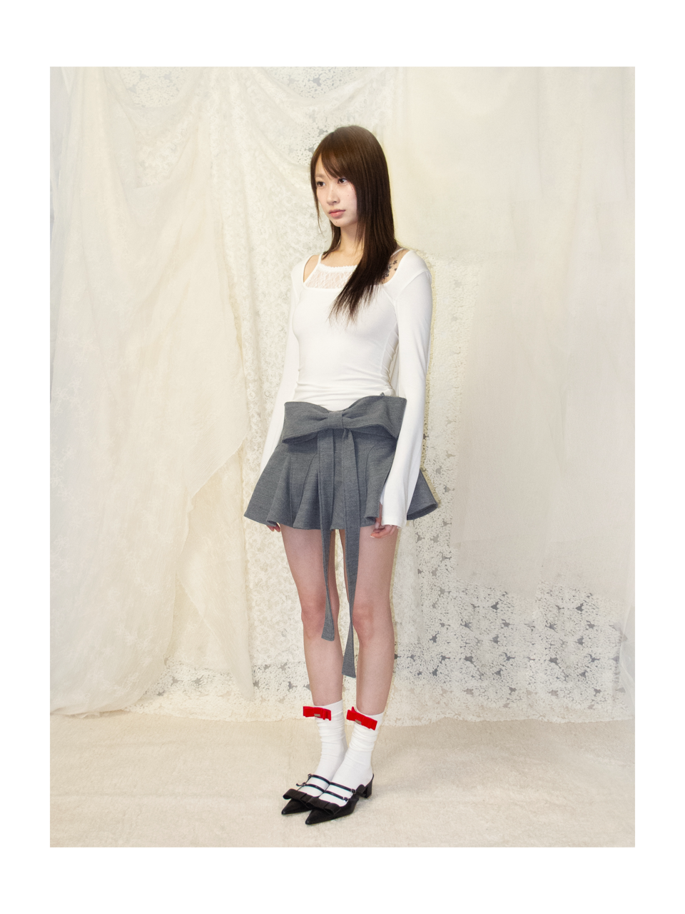 Kaiy Xiao 山雀天丝蝴蝶结波浪短裙
