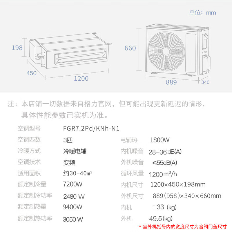 格力 风管机K+ 系列 大3匹 超一级能效 FGR7.2Pd/KNh-N1客餐厅一拖一