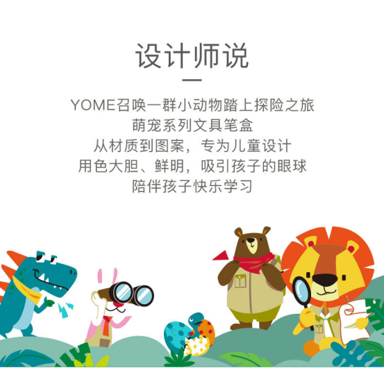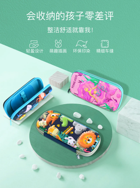 3D立体的图案设计 让小动物栩栩如生 整个文具盒的品质感倍增 香港YOME文具盒 从材质到图案,专为儿童设计 用色大胆 、鲜明、吸引孩子的眼球 陪伴孩子快乐学习