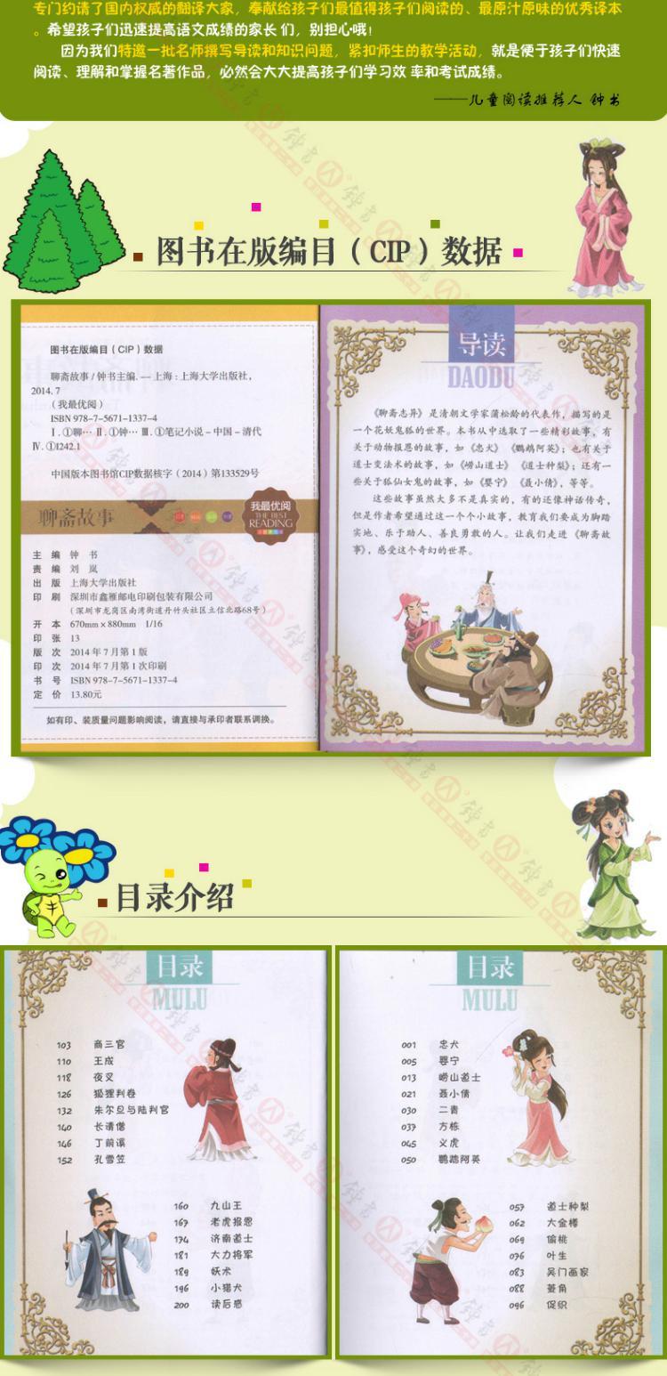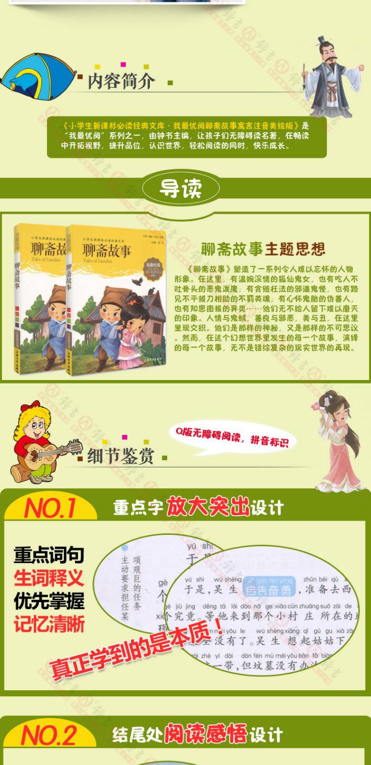 1-3年级适用 注音美绘版-聊斋故事 钟书正版少儿读物我优阅系列拼音彩图版聊斋故事 儿童文学课外读物小学生作文阅读写作能力