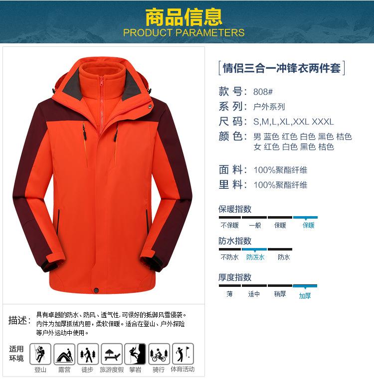 冬季户外冲锋衣裤男女套装两件套可拆卸抓绒裤防风防水登山服