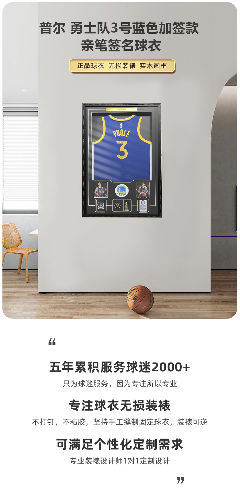 收藏系列 普尔 勇士队3号蓝色加签款 亲笔签名球衣