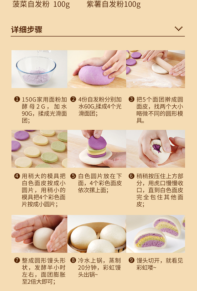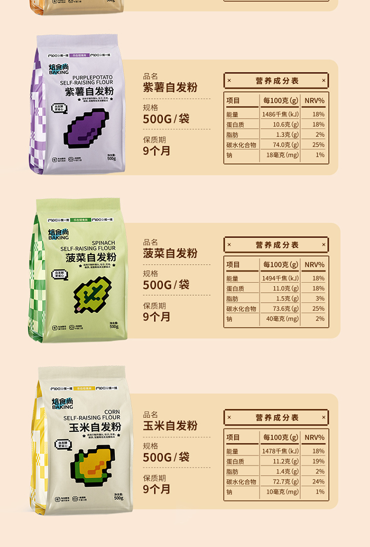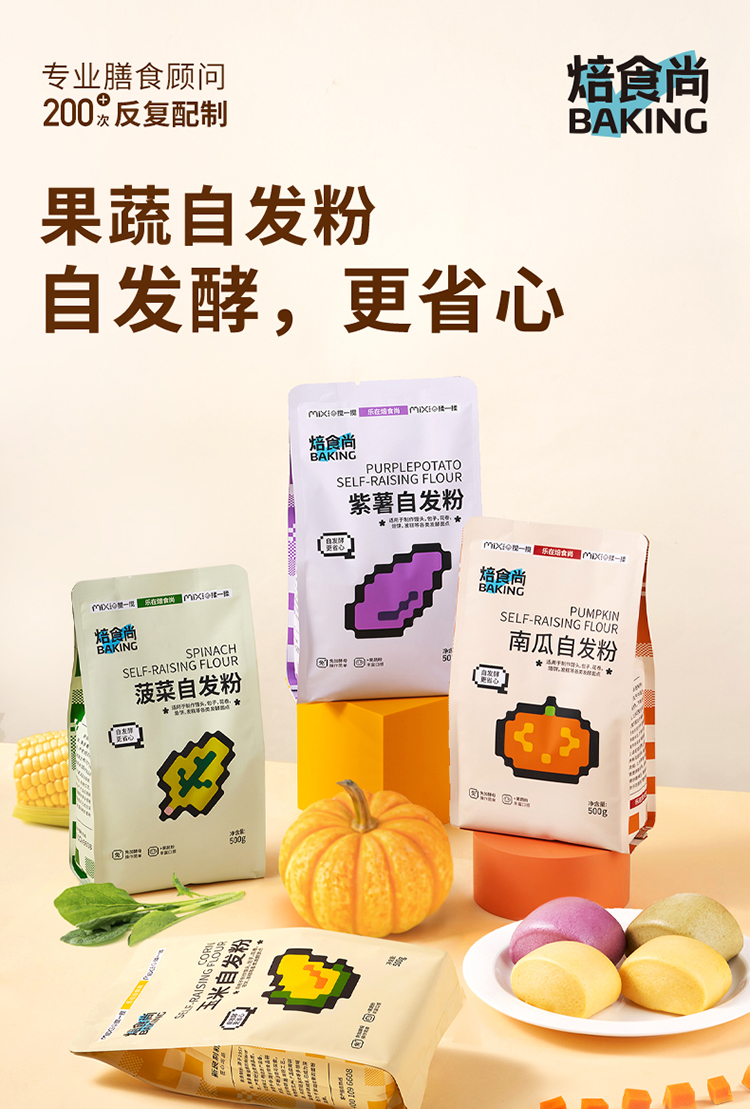 新良焙食尚果蔬馒头自发粉500g紫薯玉米自发粉彩色包子中筋面粉