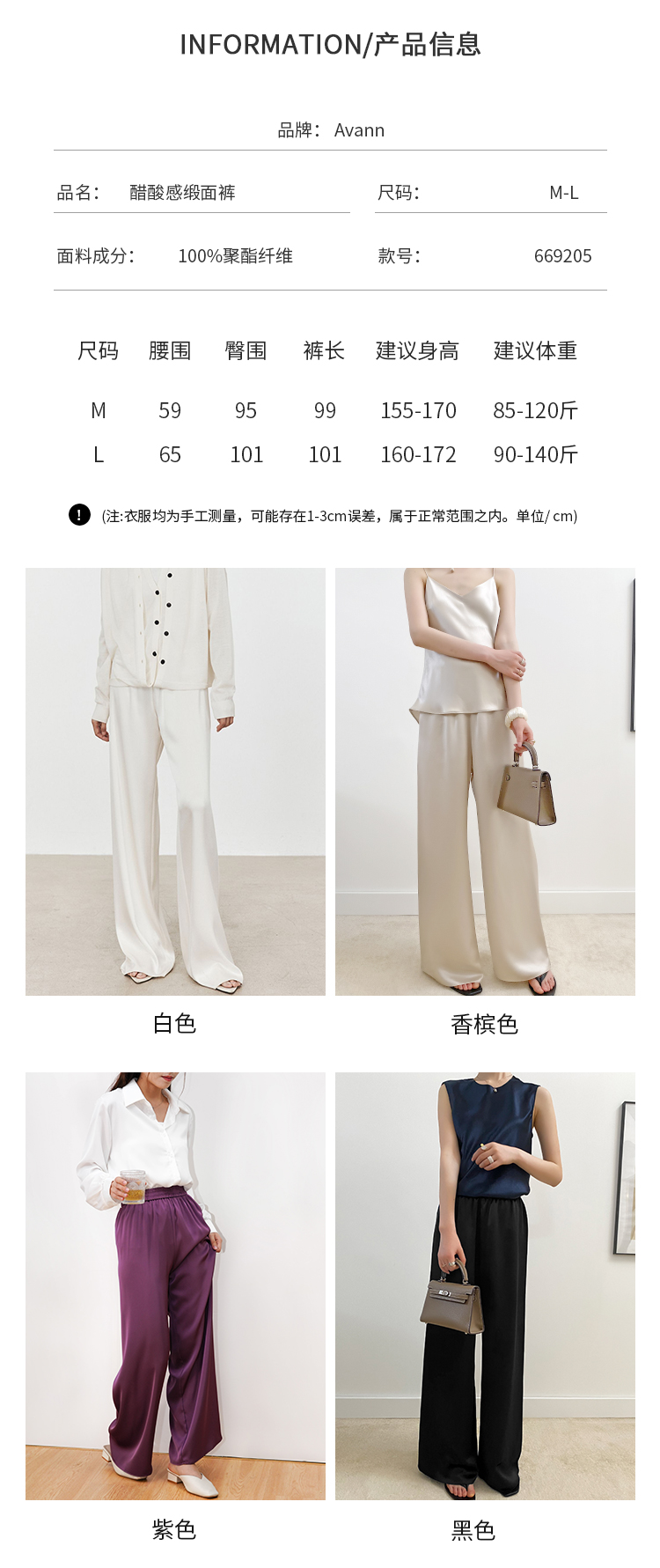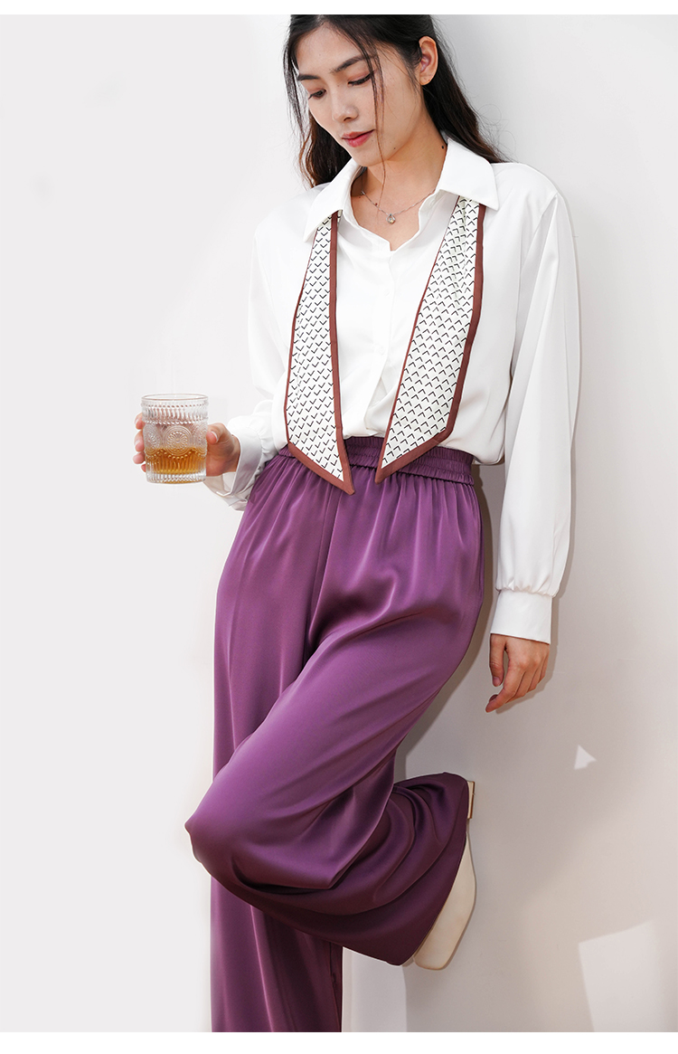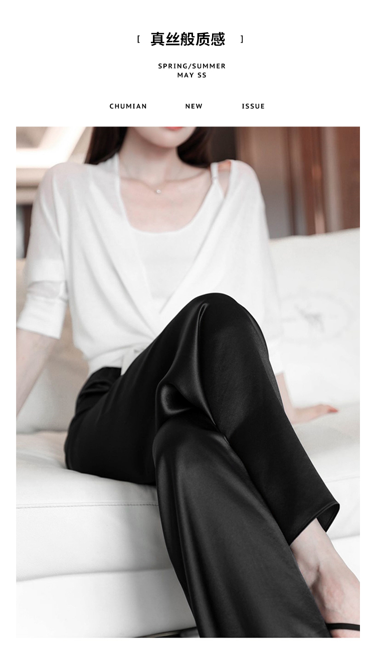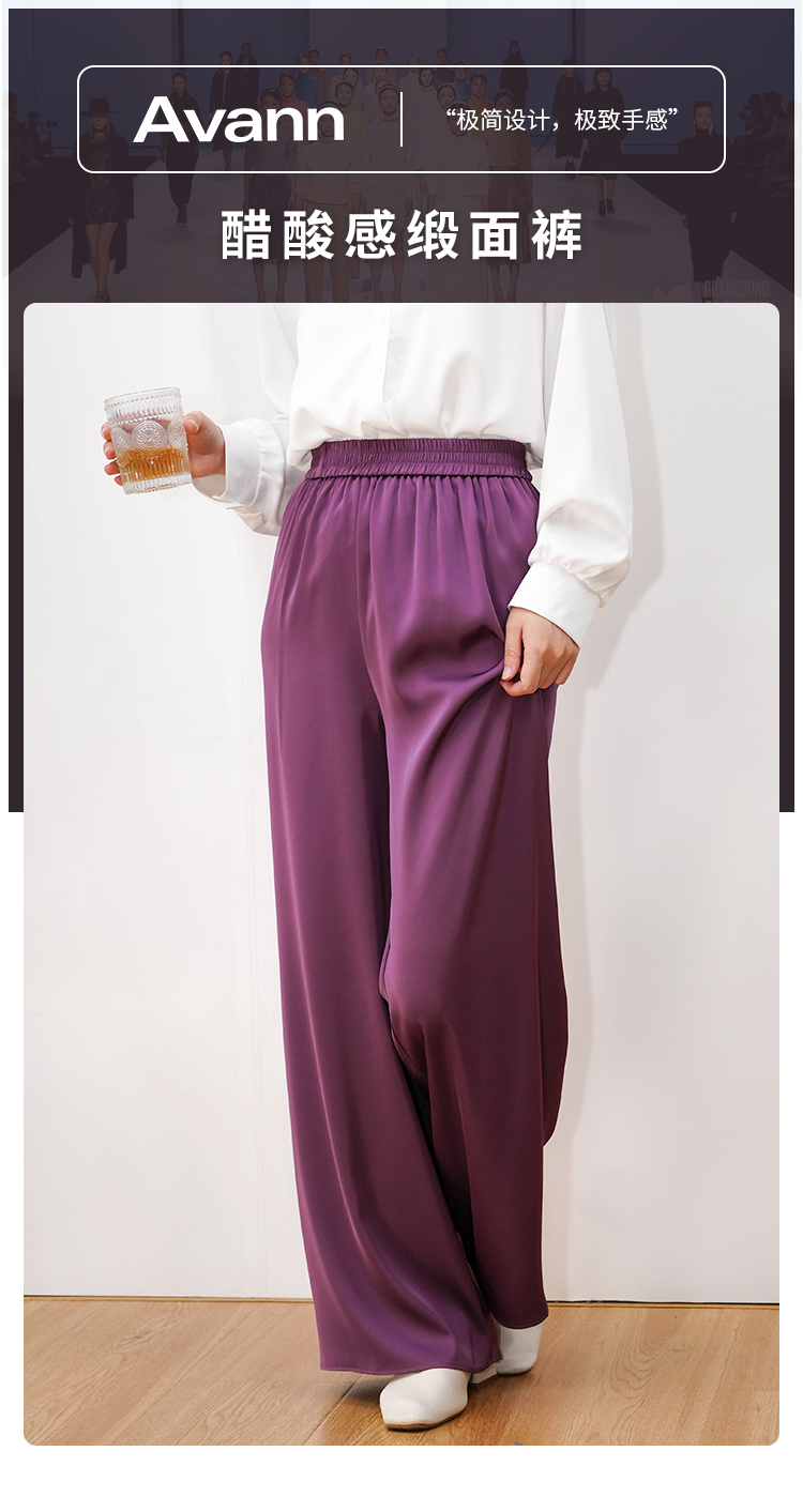 Avann高定醋酸缎面直筒阔腿裤669205