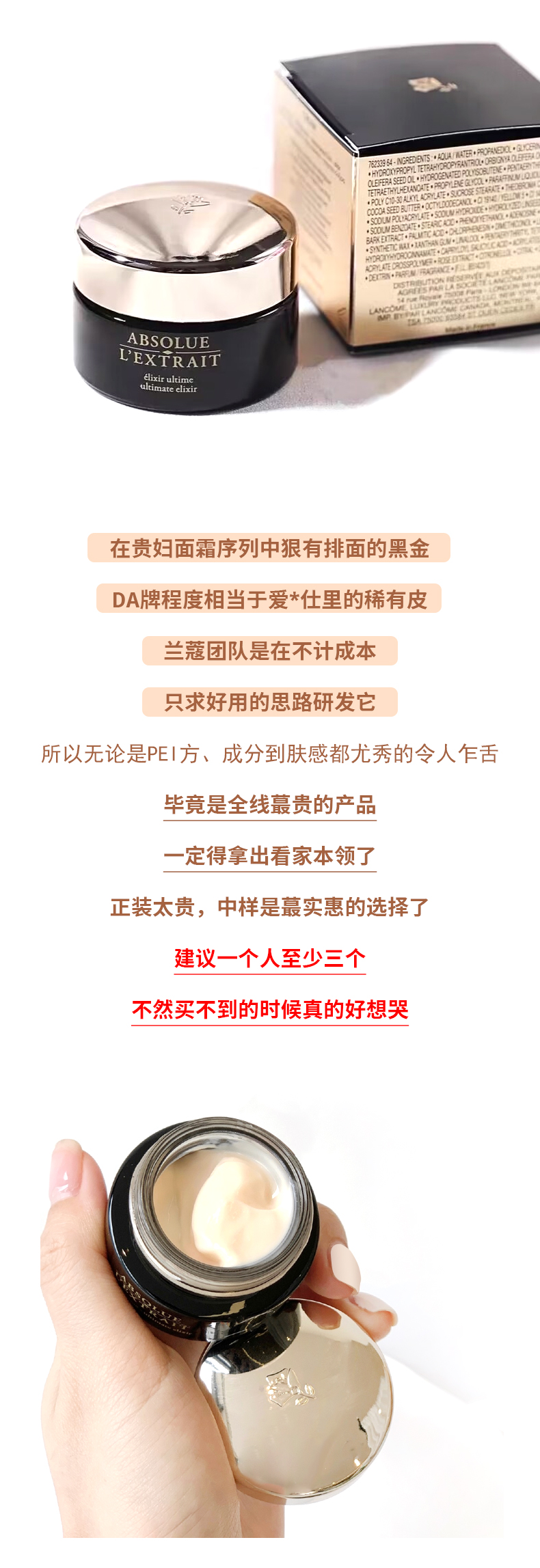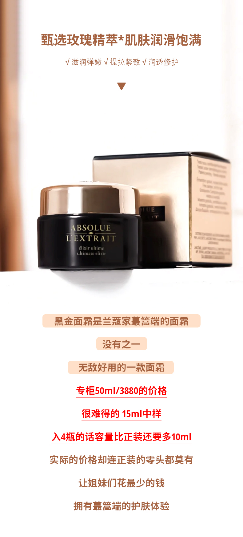 Lancome兰蔻黑金臻宠滋养面霜15ml中小样 高浓度玻色因紧致保湿