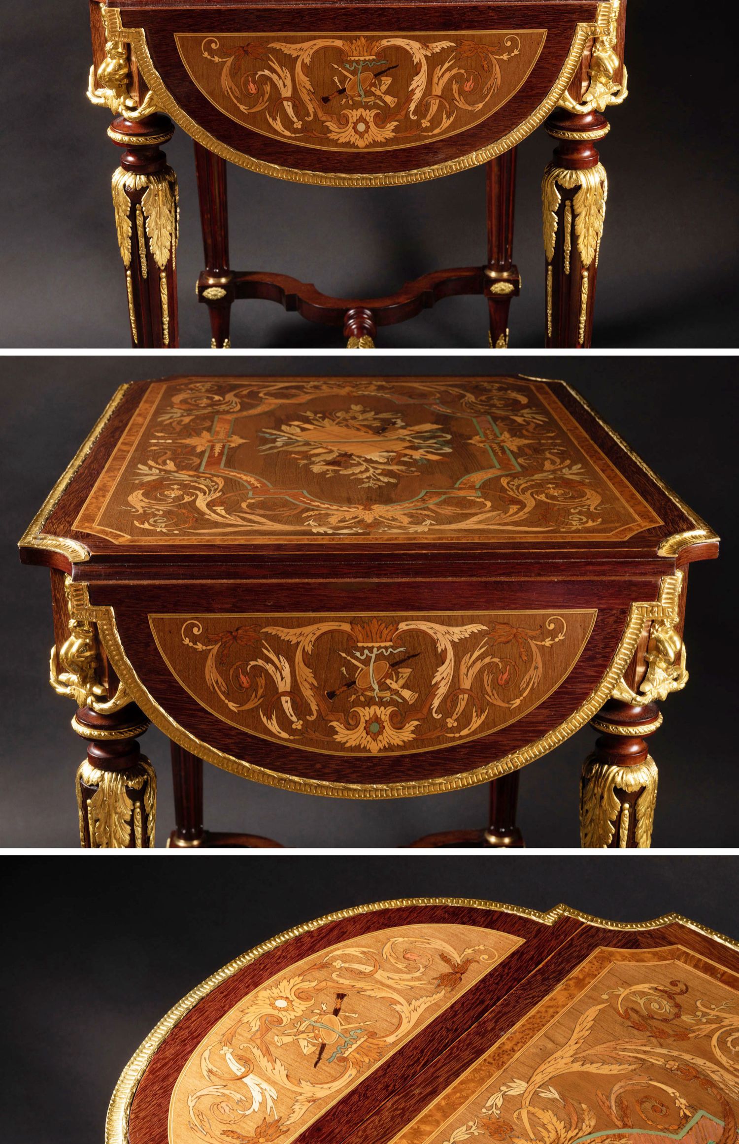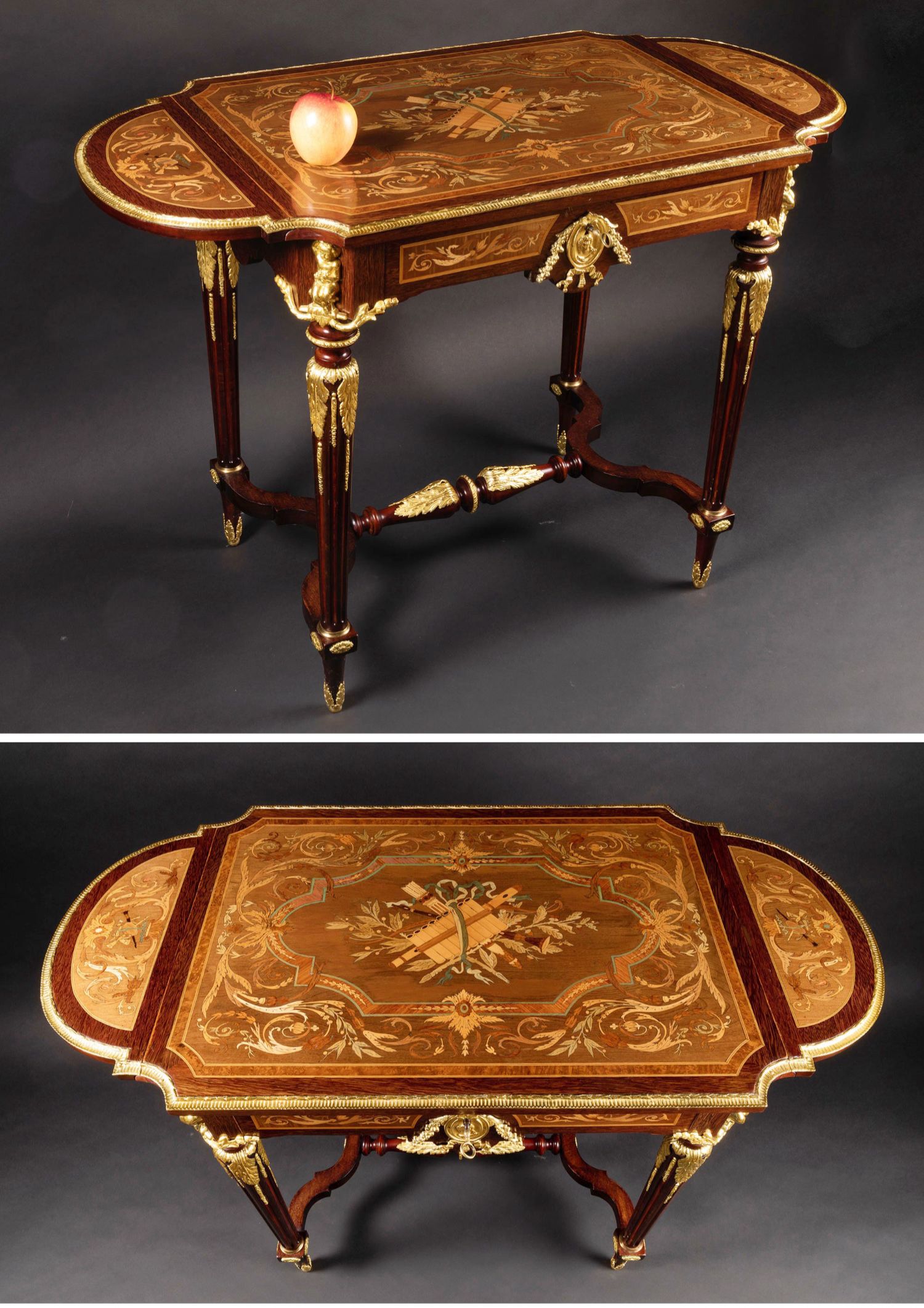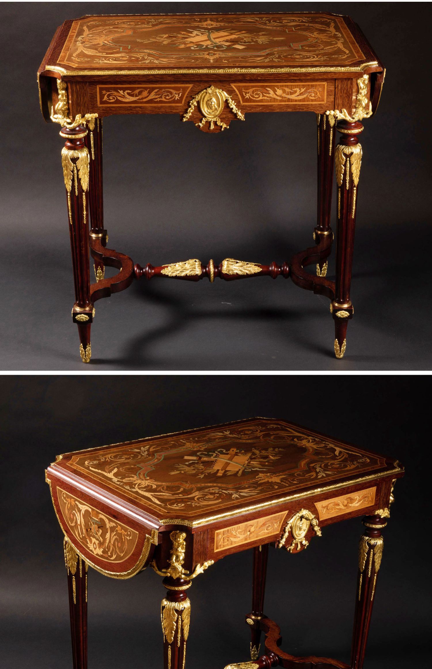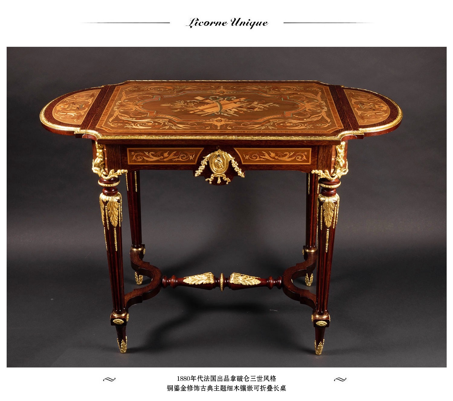 独角鹿西洋古董家具法国拿破仑三世铜鎏金古典细木镶嵌可折叠长桌