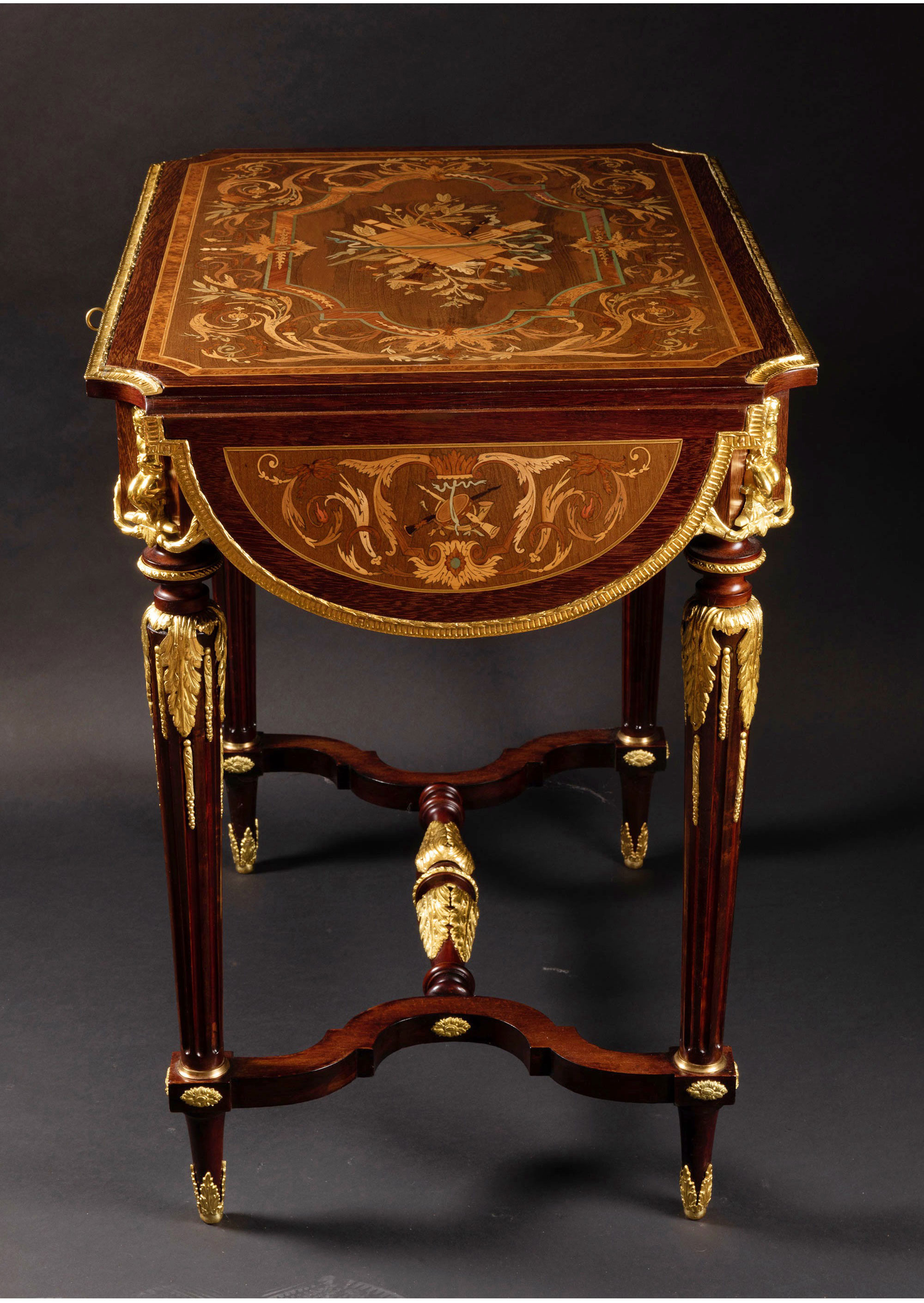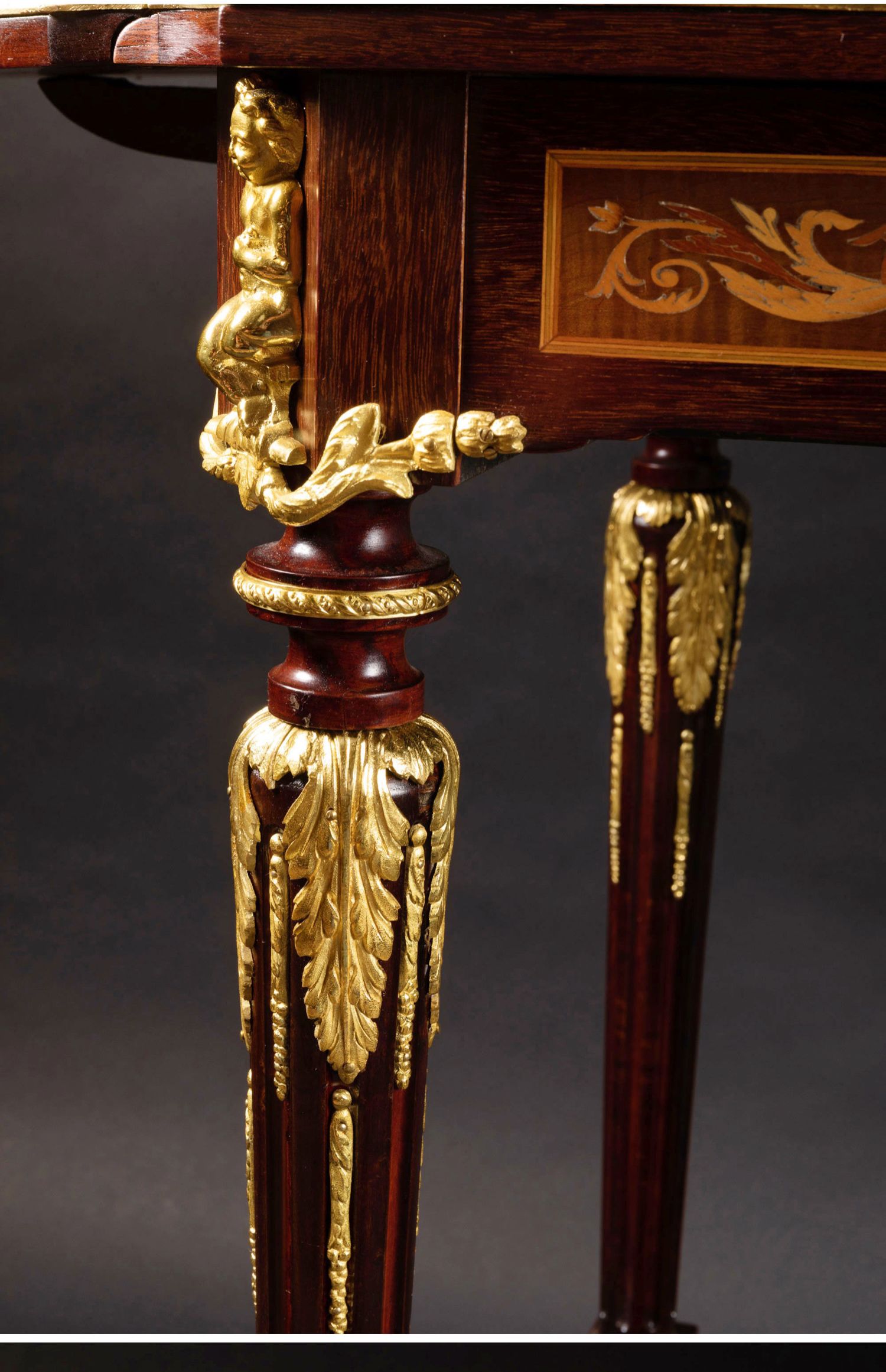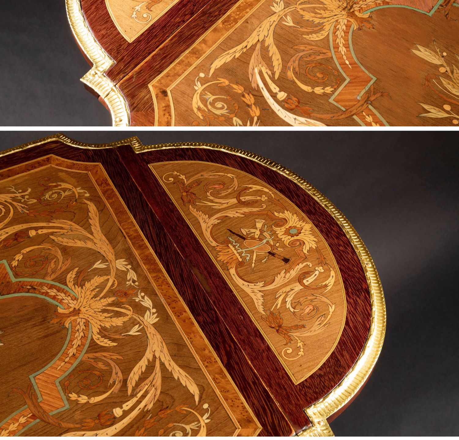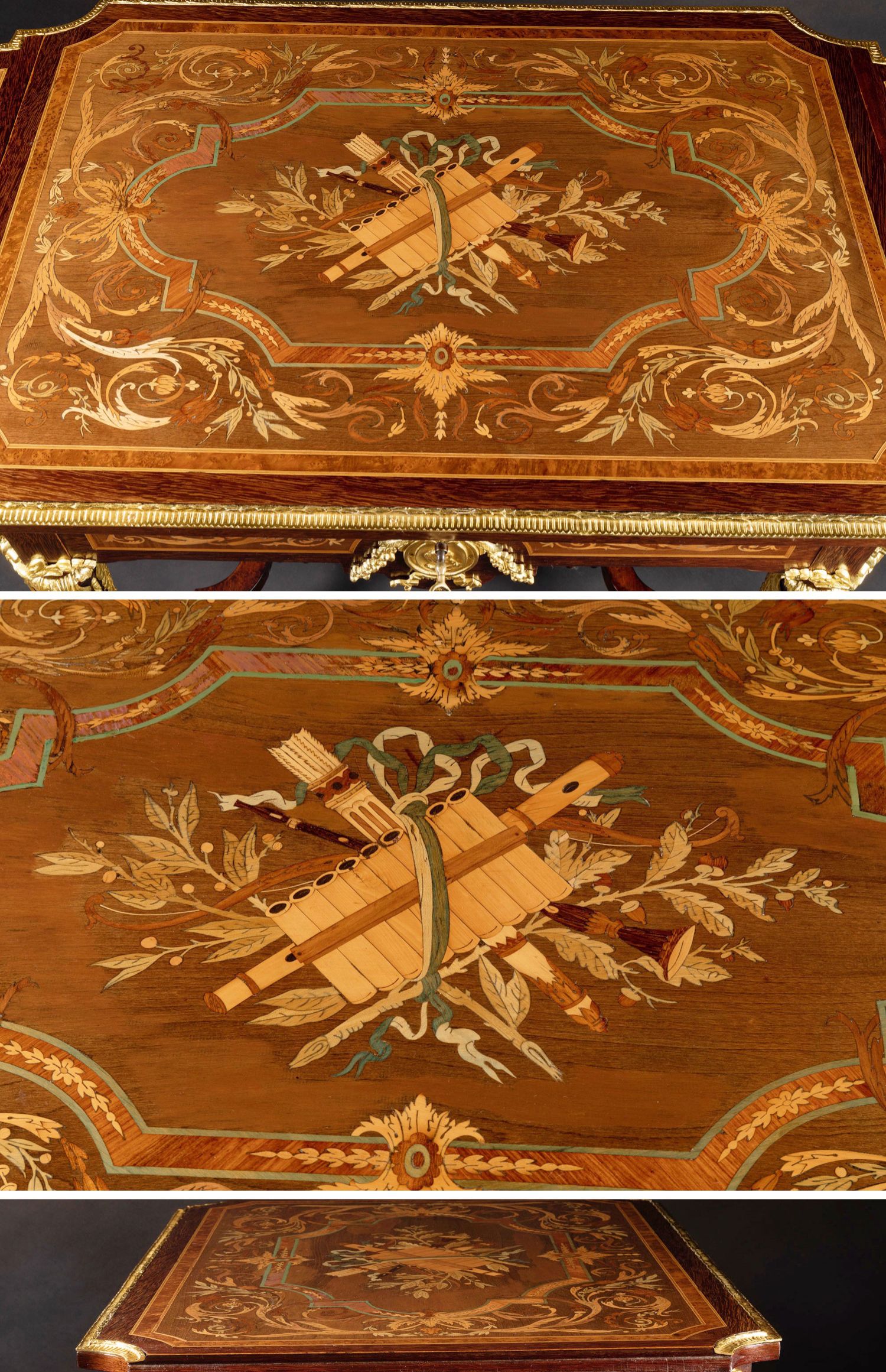 独角鹿西洋古董家具法国拿破仑三世铜鎏金古典细木镶嵌可折叠长桌