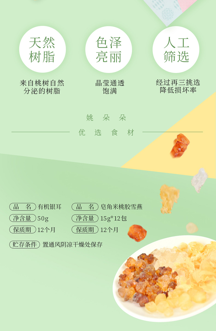 姚朵朵胶原组合桃胶雪燕皂角米有机银耳糯润养组合230g