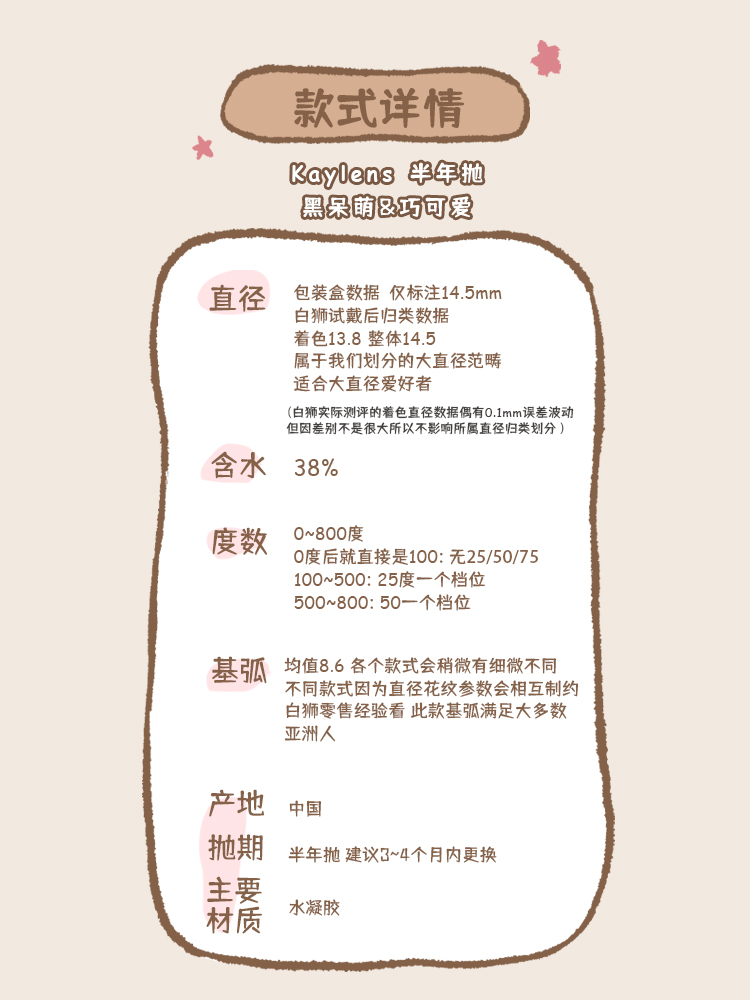 kaylens旗下|巧可爱&黑呆萌|14.5mm白狮参考着色大直径 |半年抛2片