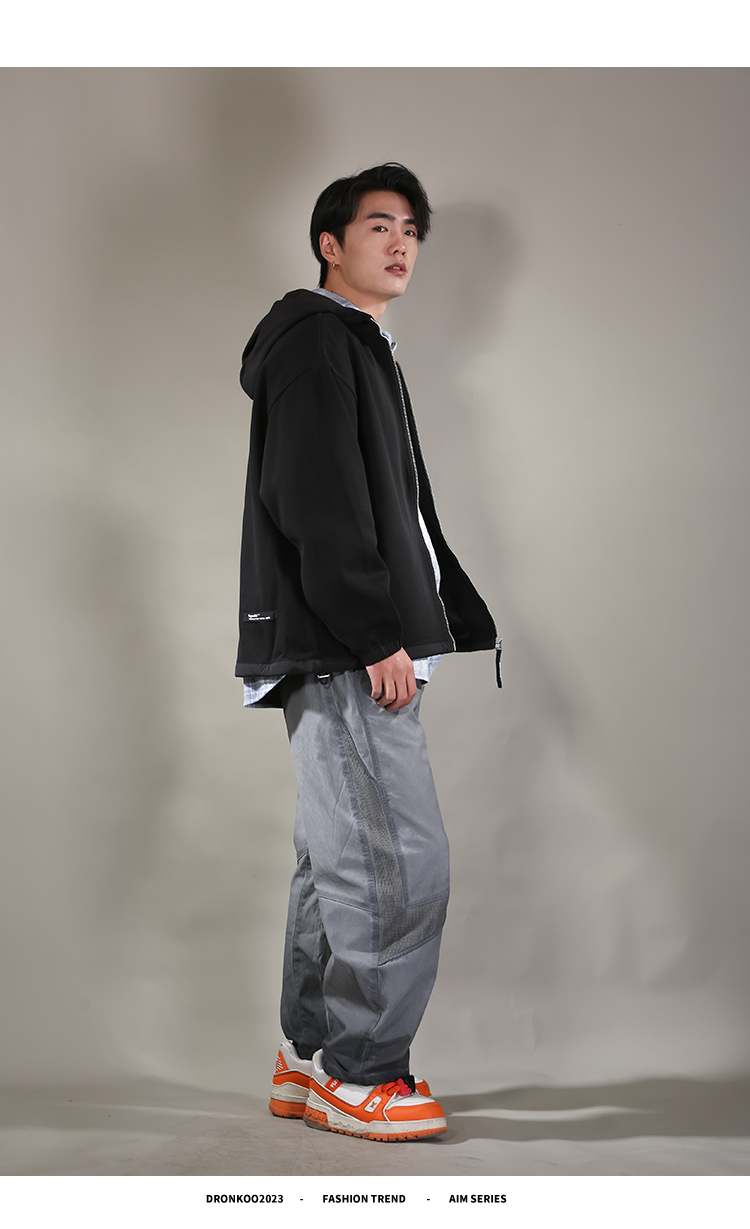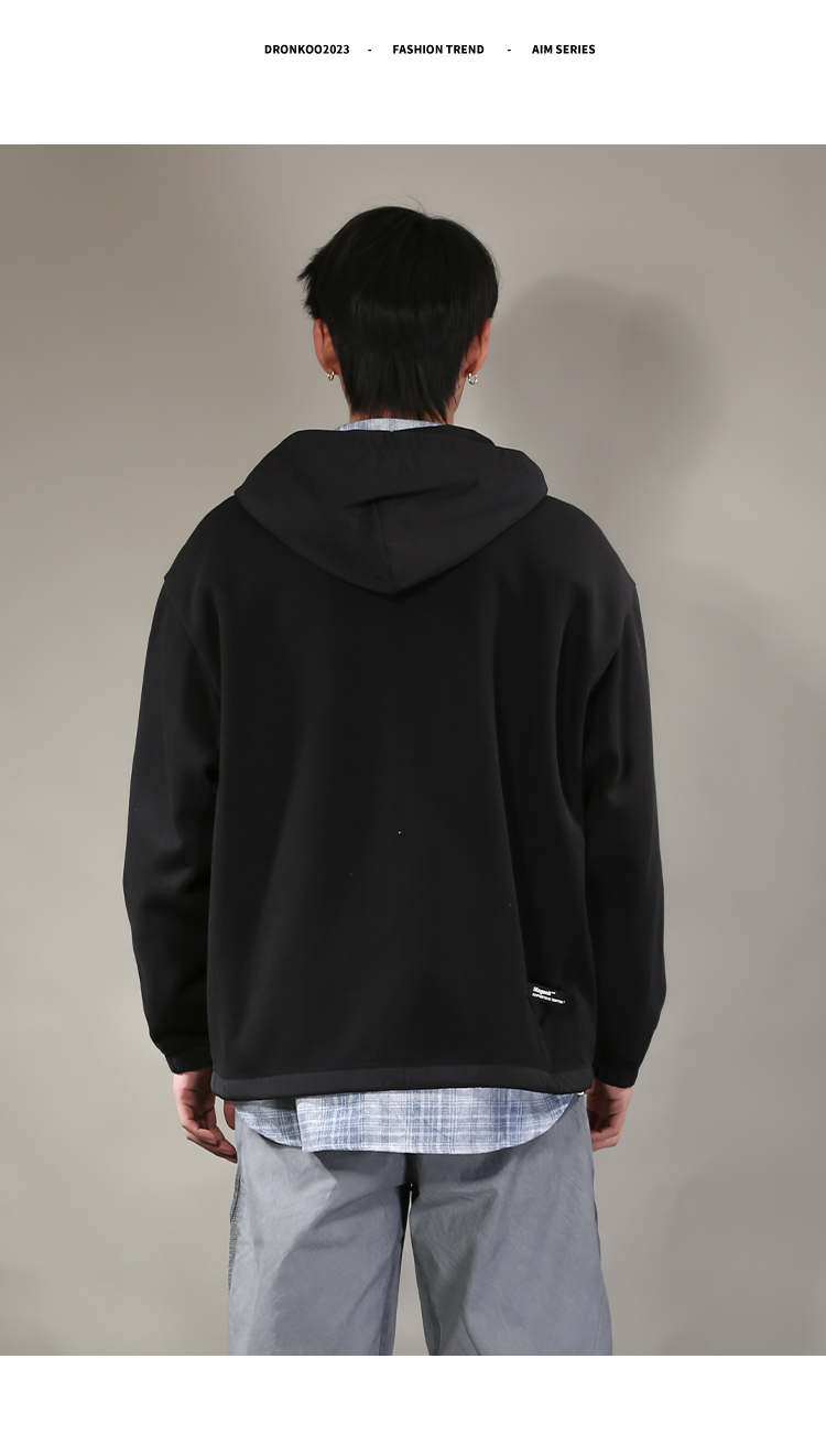 DRONKOO 2026 连帽帽子下摆袖口撞梭织料针织中厚开衫