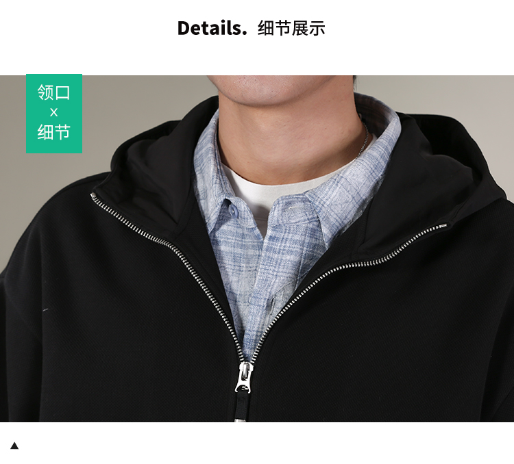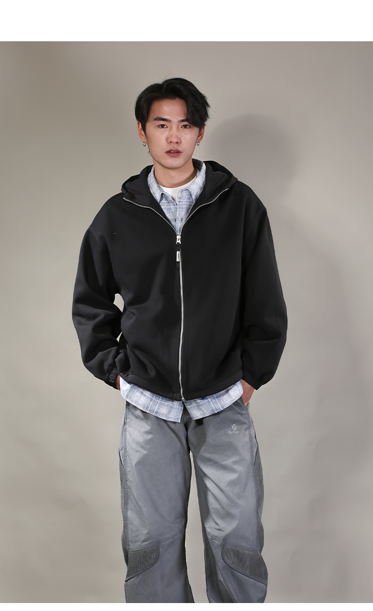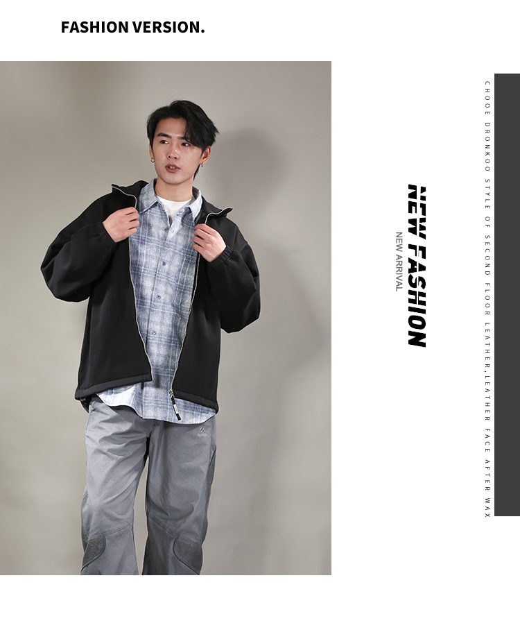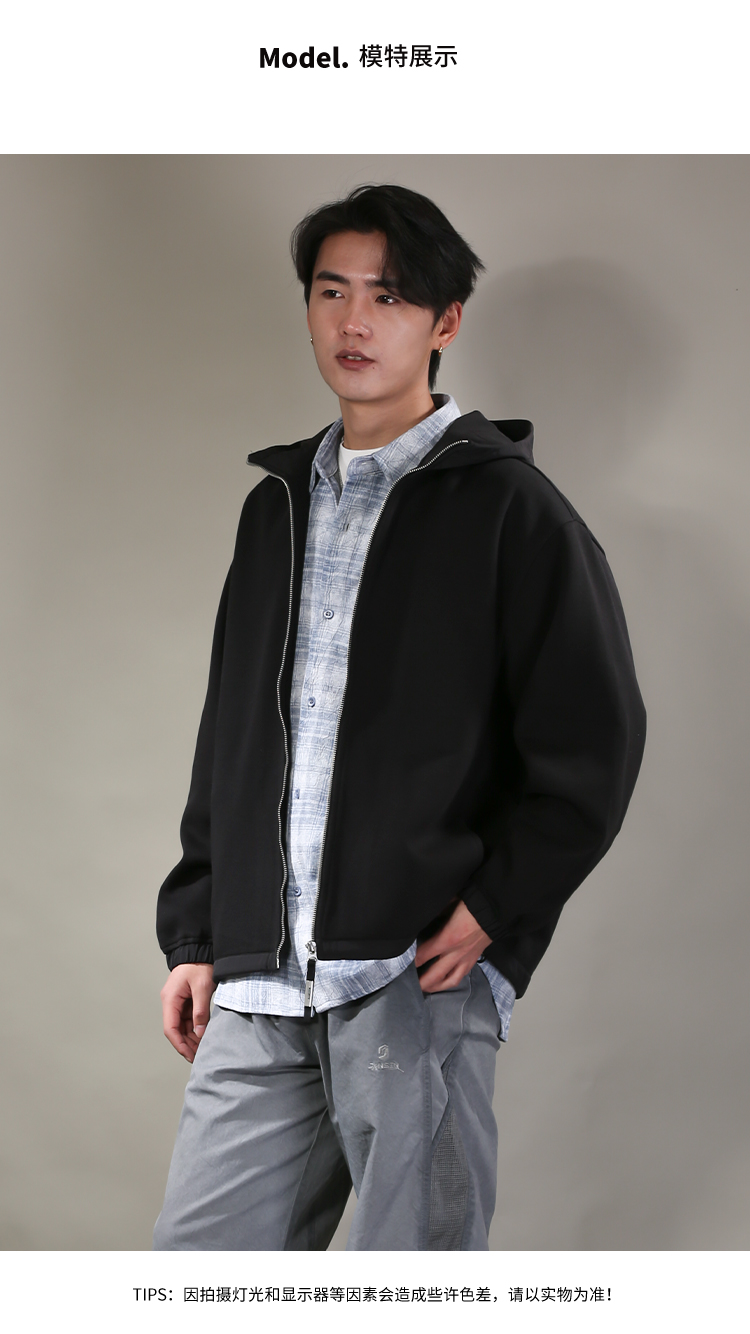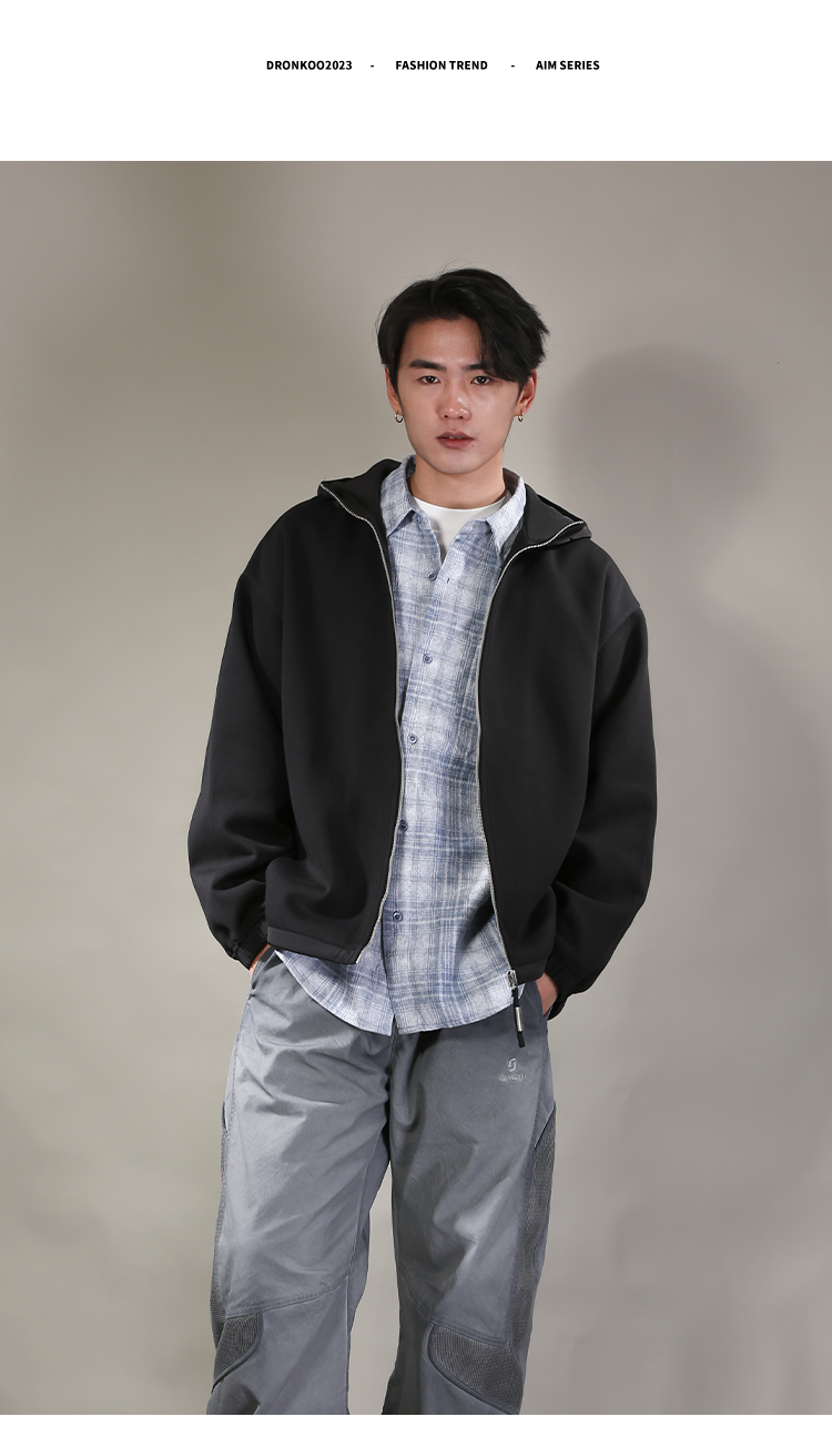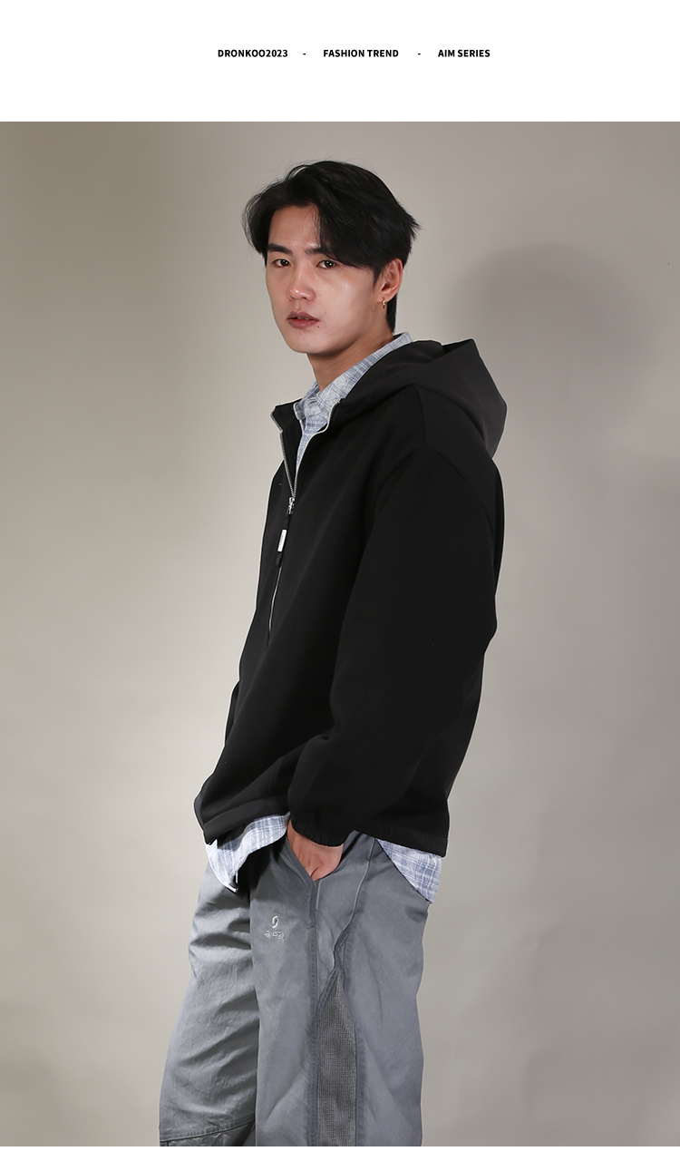 DRONKOO 2026 连帽前后弧形压边下摆抽绳中厚夹克