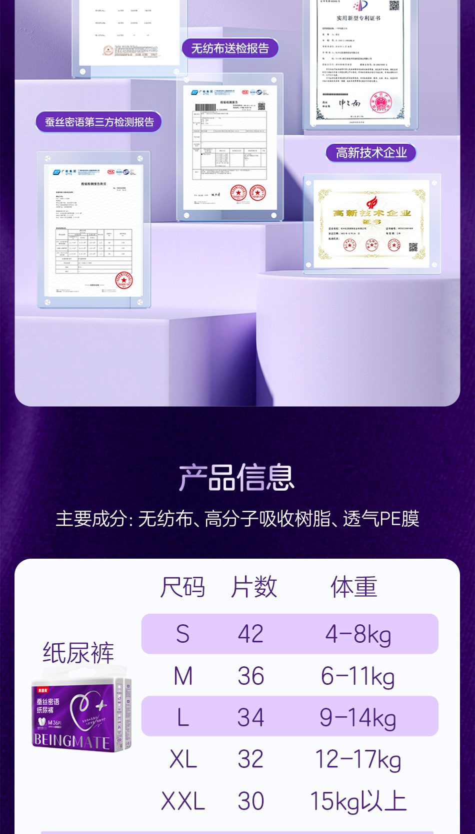 【买1赠1 到手2包】贝因美蚕丝密语系列纸尿裤/学步裤 +送亲肤绵柔巾*4包