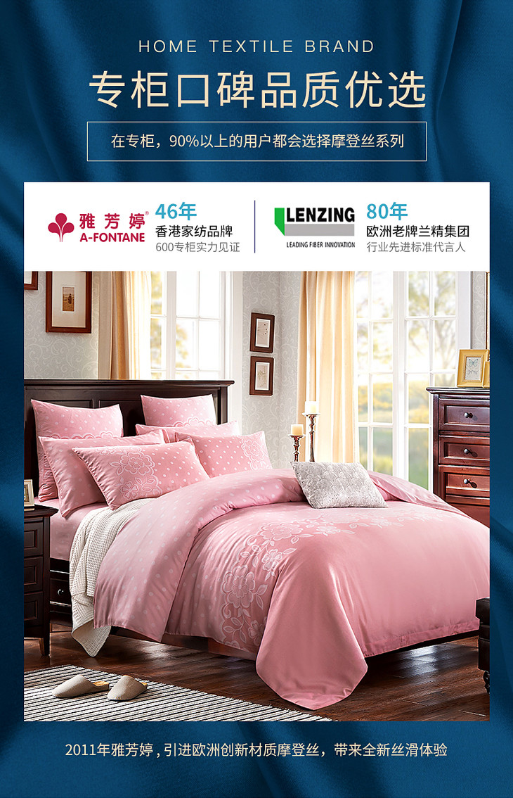 雅芳婷新款60支摩登丝床上四件套床笠款莫代尔天丝被套高级感套件