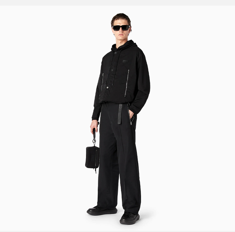EMPORIO ARMANI 阿玛尼 男士徽标贴花拉链连帽外套 黑色 6R1BU2 1NAMZ 0999