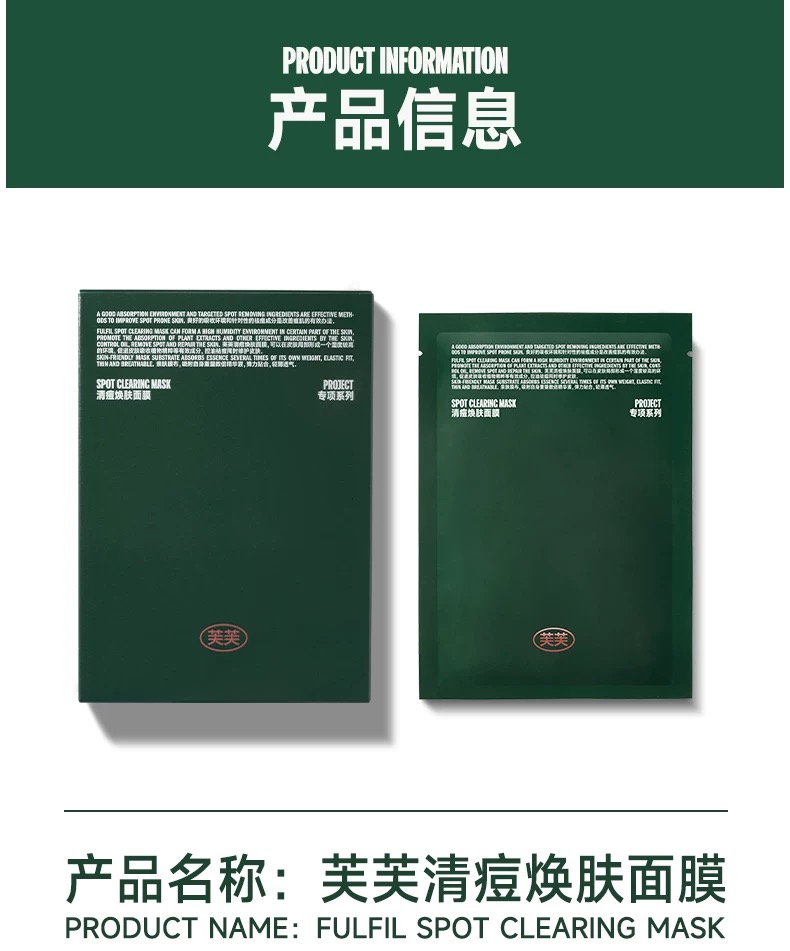 芙芙舒缓祛痘修复保湿面膜 5片装 适合油痘肌去闭口粉刺痘印