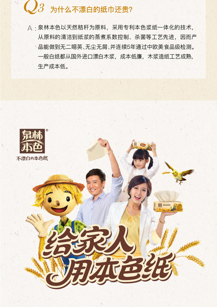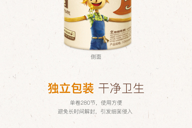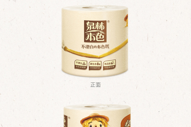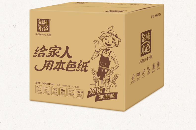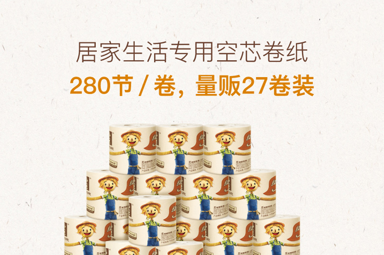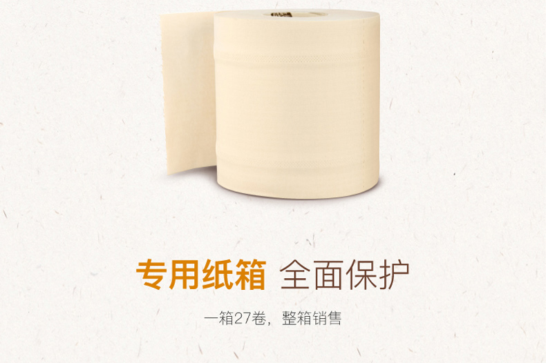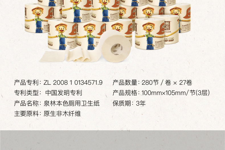 泉林本色 健康有芯本色卷纸3层280节27卷(卫生安全认证 无漂白无添加 易降解不堵塞)厕纸巾整箱销售