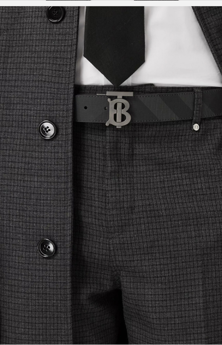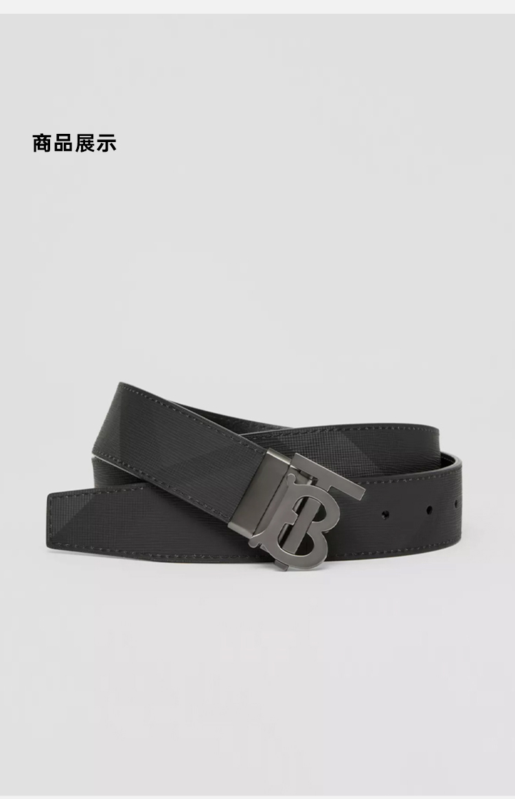 【二】BURBERRY 巴宝莉 男士格纹拼皮革双面两用 TB专属标识 腰带 格子 8065339 A1208